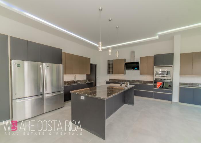 ID# 116646. Brand new luxury home for sale in La Guácima, Hacienda Los Reyes, 550 sqm construction, 1.200 sqm lot, 4 bedrooms, 6.5 baths, US$1.190.000. Looking for the ultimate luxurious living experience that offers a perfect balance of nature and comfort? Look no further than this stunning brand-new contemporary house for sale in La Guácima, Hacienda Los Reyes. This exceptional property offers a spacious 550 sqm of construction on a generous 1.200 sqm lot, with breathtaking views and endless amenities that will make you feel like you are living in paradise. As you enter this magnificent three-level residence, you will be immediately struck by the perfect blend of indoor and outdoor living spaces that provide an open and seamless transition from the lush gardens outside to the elegant interior. The spacious living room, dining area, and fully equipped kitchen are all designed with modern and high-end appliances and furniture, offering the ultimate in luxury and convenience. The house has four bedrooms, each with its private bathroom and closet, which are perfect for families or those who love to entertain guests. The master suite is a true masterpiece, with a spacious walk-in closet, double sinks, and all the luxuries you would expect from a high-end property. Outside, the house offers an ample social area perfect for hosting barbecues and outdoor parties. The property also includes ample parking space for up to eight vehicles, all under roof, offering the ultimate in convenience and security. There is also a vineyard a coffee trees surround the house. But the luxury of this property is not limited to the house itself. Hacienda Los Reyes is a 24/7 secured residential complex that offers an exclusive and tranquil environment away from the hustle and bustle of the city, but with easy access to all kinds of urban facilities such as shopping centers, supermarkets, schools, banks, restaurants, hospitals, and entertainment venues. The complex is an oasis of greenery, with vast green areas, orchards, and fruit trees. The amenities are endless, including a stunning pool, a soccer field, and a spacious ranch. The location of the complex is strategic, providing easy access to all major highways, ensuring that you are never too far from anything you need. This brand-new luxury house in La Guácima, Hacienda Los Reyes, is the perfect property for those seeking a luxurious and comfortable lifestyle in a tranquil and secure environment. With modern and high-end finishes and amenities that are second to none, this property represents the ultimate in luxury living in Costa Rica. Don't miss your chance to make it your own and start living the dream today!