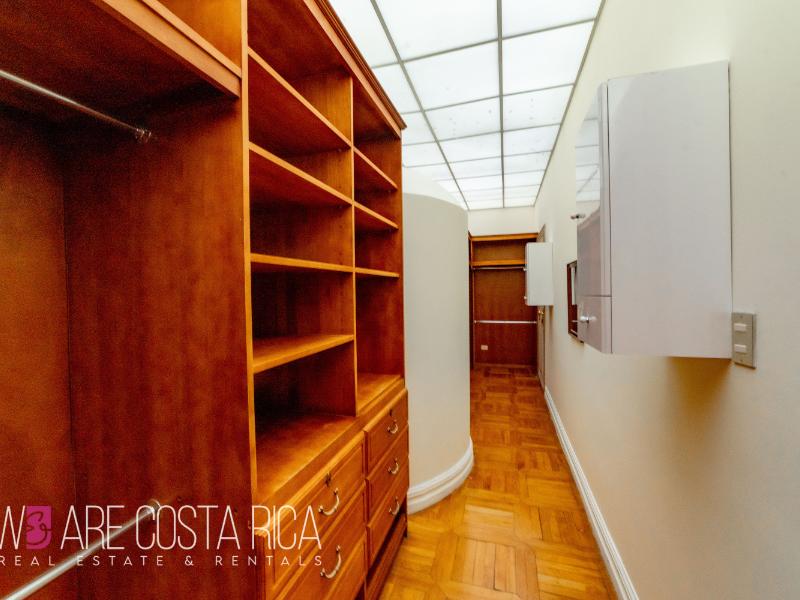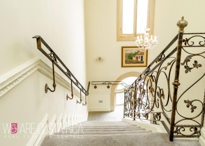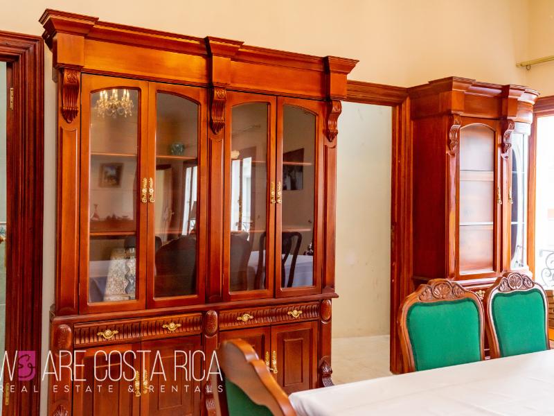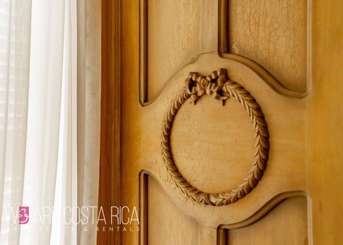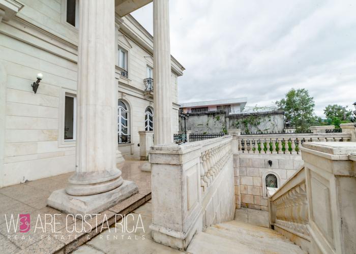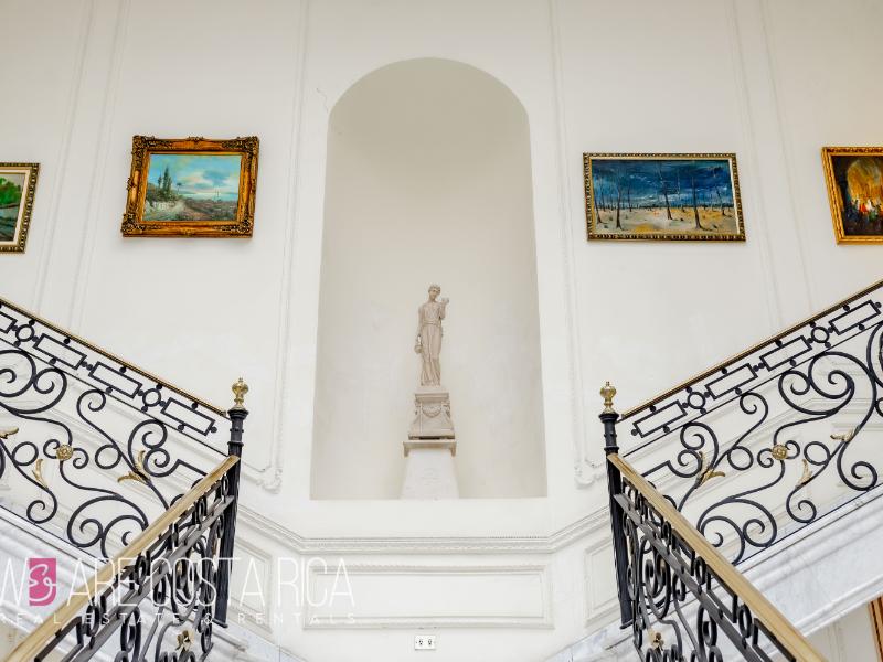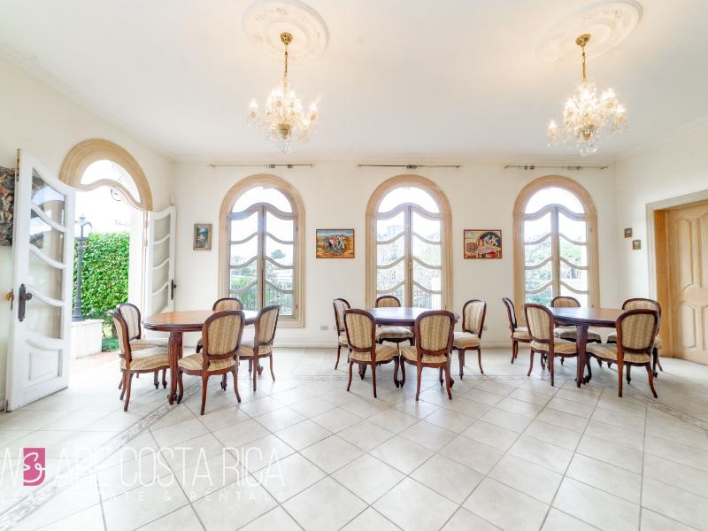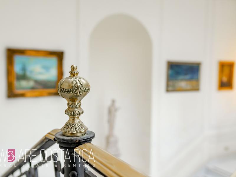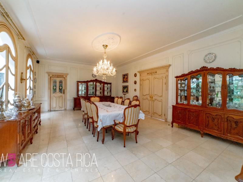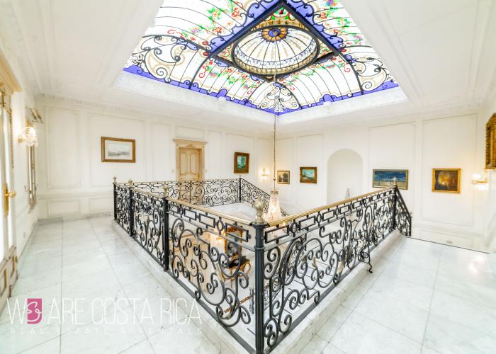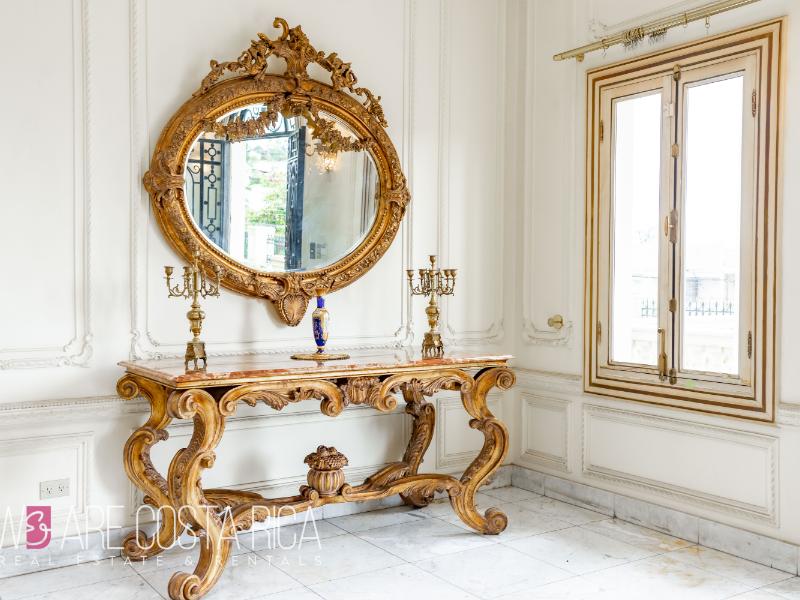 ID# 116657. Luxury Colonial Residence for sale in Los Yoses, 1.361 sqm construction, 1.374 sqm land, 4 bedrooms, 9.5 baths, US$3.500.000. CASA RENAISSANCE is a magnificent residence in neoclassical style, inspired by The Schönbrunn Palace, located in Vienna, in the version we still enjoy today, the result of the reforms ordered by Maria Theresa (1740-1780) to turn it into the summer retreat of the Austro-Hungarian Empire, which captivates both for its sumptuousness and its family atmosphere. Distributed in 3 two-story buildings, it includes areas and rooms destined to social life that call the attention for their splendor, in contrast to the private rooms that denote the elegant simplicity of their dwellers. The front of the property presents 18 imposing Indian laurels on the sidewalk. Entering and going up the majestic stone balustrade, there’s the atrium of the main building framed by 4 Tuscan columns that support a gabled pediment under which, at the back, we find a pair of magnificent tempered glass doors supported by wrought iron structures. The imposing lobby welcomes its residents with very elegant Spanish marble floors adorned by 4 very fine consoles, also of European marble, topped by mirrors that culminate in a formidable gallery adorned, on its north side, by a delicate balcony that reminds us of the famous Balcony of the Pope in the Vatican, topping this gallery at the top with a beautiful dome of European stained glass. On the East side of the property, an independent lounge dedicated to entertaining guests is distinguished in a completely separate building. This lounge includes an exquisite bar, 3 luxurious bathrooms for guests and a roof terrace with one of the best views of the San José city Eastside. Then, a swimming pool built with excellent materials and very good taste surrounded by a beautiful garden and terraces, which enter the more formal social areas of the residence through a covered terrace, on the south side of the pool, with several sets of modern rattan casual living room furniture that end in beautiful doors adorned with beautiful Spanish stained glass Windows. Entering from the South side of the covered pool terrace, there’s an elegant dining room equipped with a table set made of one of the best woods in Costa Rica, mahogany, with a long and wide table for 12. This table is guarded by a beautiful and long buffet, and on its other sides by 2 large and beautiful display cabinets. On the North side of the dining room, there’s the marvelous Golden Hall, inspired by the Yellow Room of Schönbrunn Palace. The layout of the 1st level of the main building of the residence is strategically designed going out to the different sides starting from the main lobby, having in its east side the aforementioned spaces of the elegant dining room and the Golden Hall. On 2nd floor, its distribution is framed by the sober and elegant gallery that we saw before crowning the main lobby. On its East and South sides the main chambers of the owners of the house, and on its west side we find a small lobby and 2 well-appointed rooms for other family members or guests. Fascinating decoration and excellent, comfortable and very spacious distribution that the property owners main chambers have, which include a very large bedroom, a superb terrace that is suspended over the pool and shares the beautiful view of the east of the city of San Jose with the roof/terrace, a study, 2 full baths, 1 of them with bidet, multiple dressing rooms, walk-in closets, both individual and shared, very well distributed on the sides of the master bedroom, a beautiful jacuzzi and an open kitchenette with a very comfortable mini elevator to bring up the couple’s meals from the kitchen on the 1st floor. The beautiful bathroom of the master bedroom fully veneered in its floors, walls, jacuzzi and countertops, with the famous and beautiful Spanish marble red Alicante, overlooking, through a small balcony window, the back balustrade of the property where you can see a small glimpse of a tropical forest. The 3rd building of this compendium, on whose 2nd floor we find a robust mansard that operates as an infallible library and work meeting room for the residents of this mansion, and on its 1st floor there are the living areas of the driver, and a wide vehicular entrance that allows housing at the same time, along with its garages, for more than 8 vehicles. It has an integrated system of cameras and sensors that provide 24/7 security and monitoring of all sectors and in direct contact with the national police command located less than 1 kilometer away in the same neighborhood Los Yoses, with armed and confirmed immediate response in less than 2 minutes.