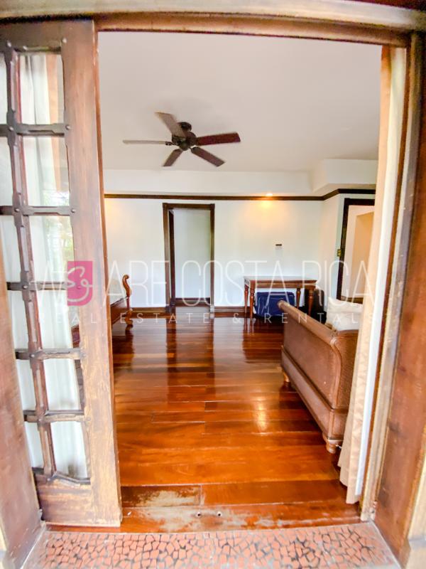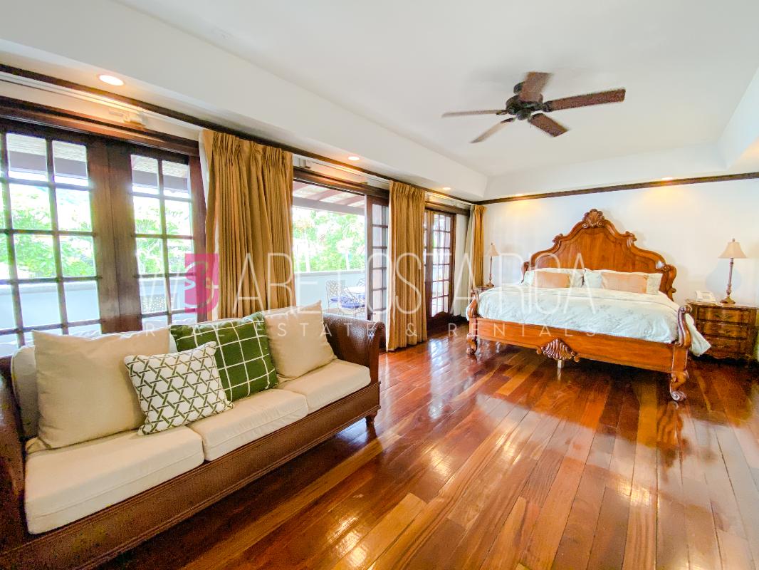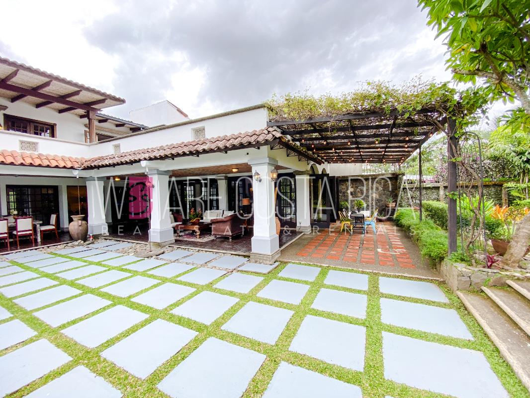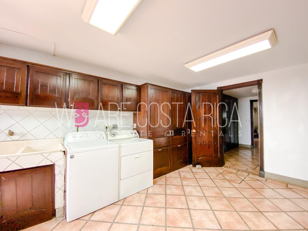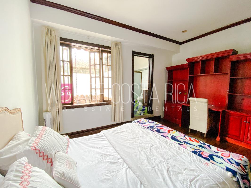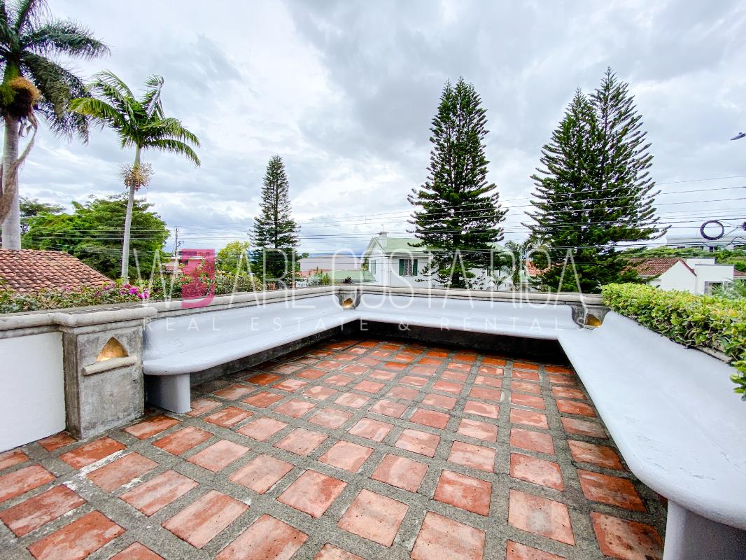 ID# 115795. Venta de casa estilo colonial en Los Laureles, Escazú, 820 m2 de construcción, 1.052 m2 de terreno, 5 habitaciones, 5.5 baños, US$850.000 (Financiamiento disponible por parte del propietario). Hermosa casa tradicional de 2 pisos con un encanto único. Cuenta con una elegante arquitectura colonial que incluye columnas decorativas, puertas y ventanas francesas de madera, amplias terrazas y cielos altos abovedados de ladrillo. Cuenta con amplios espacios con mucha luz natural y ventilación, tanto en áreas sociales como privadas. Sala de estar y comedor formal que se conectan a las terrazas y al jardín. Cocina de lujo, separada, con sobres de granito, mucho espacio de almacenaje, desayunador y electrodomésticos de alta gama. Hay 2 salas de TV, área de lavado, cuarto de servicio con baño, 2 oficinas y garaje para 5 vehículos. El área privada cuenta con 5 amplios dormitorios con finos pisos de madera. Todos tienen su propio baño y closets, pero el principal tiene walk-in closet. La propiedad tiene una excelente ubicación dentro del barrio residencial Los Laureles. Es una zona segura y tranquila en el muy buscado distrito de San Rafael en Escazú. Cerca de una amplia variedad de amenidades y servicios urbanos.