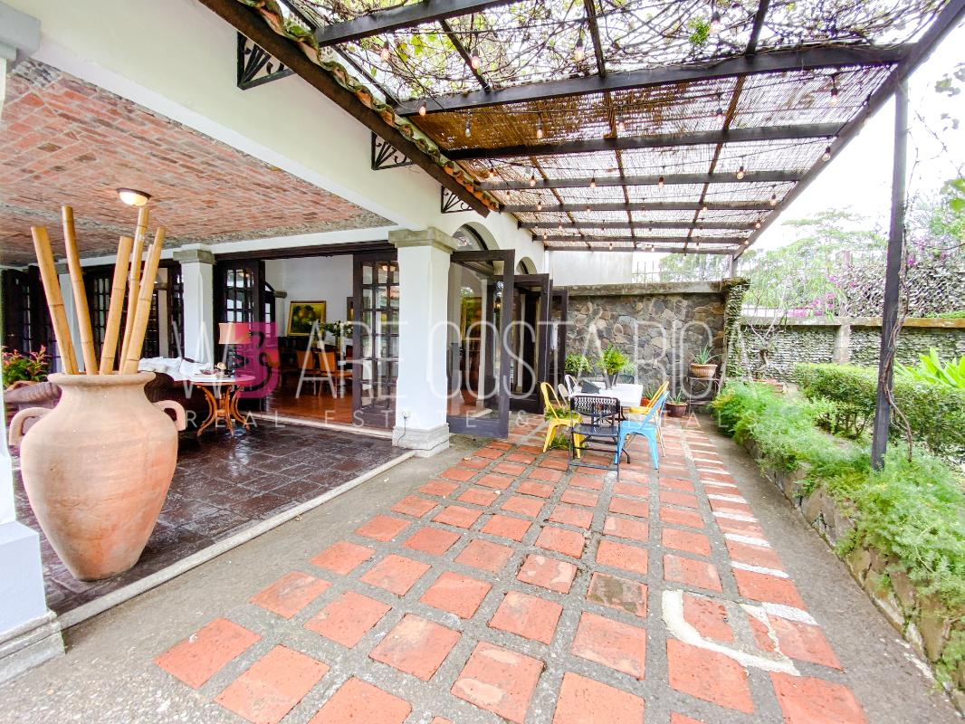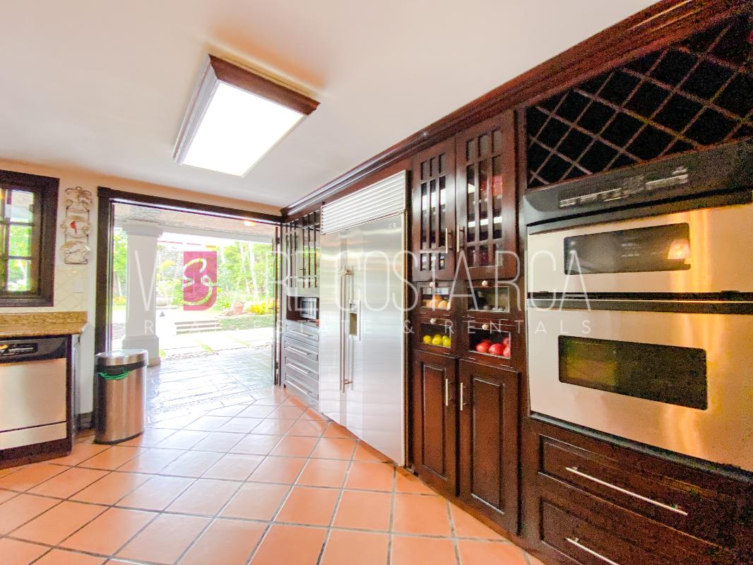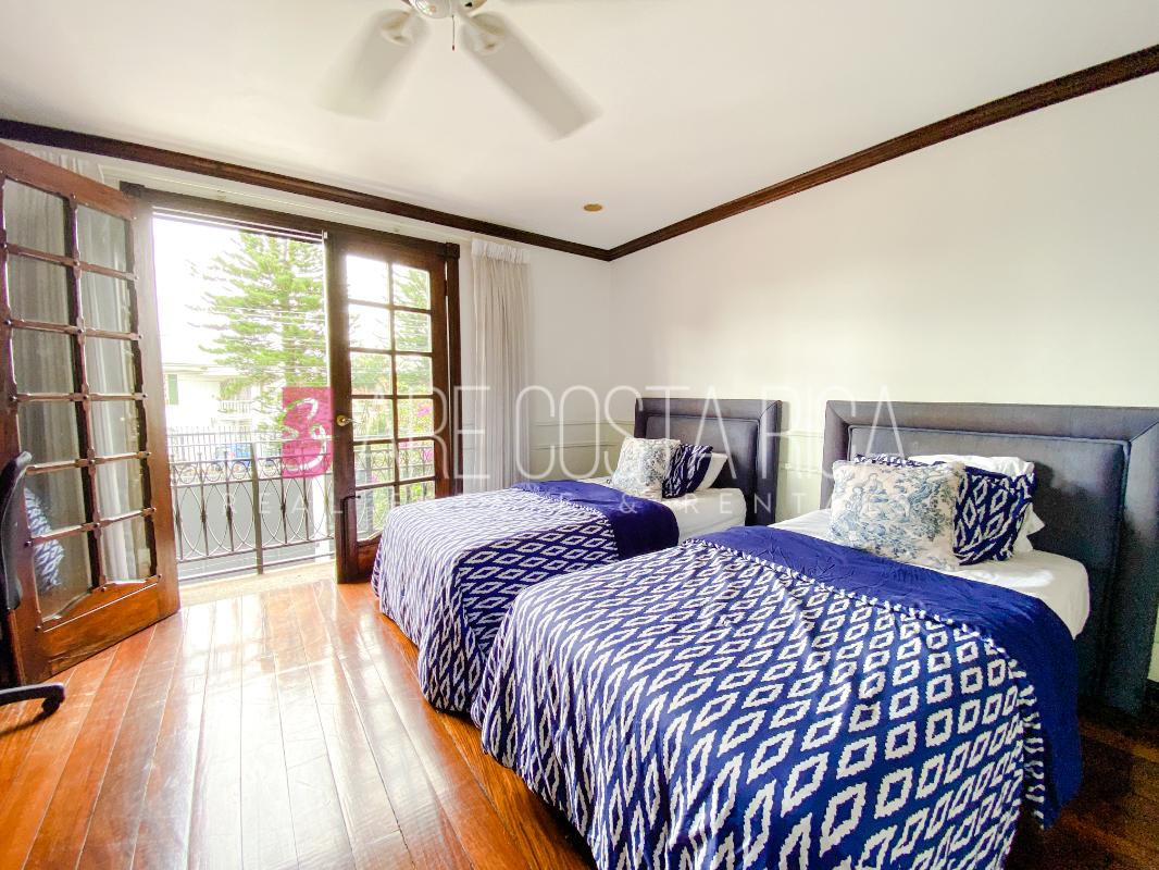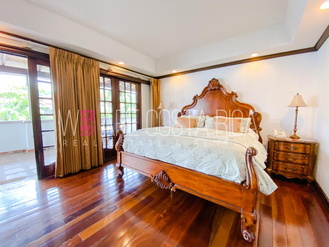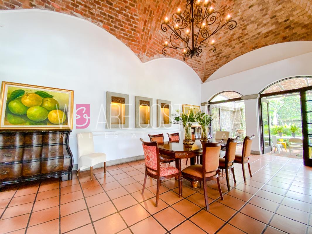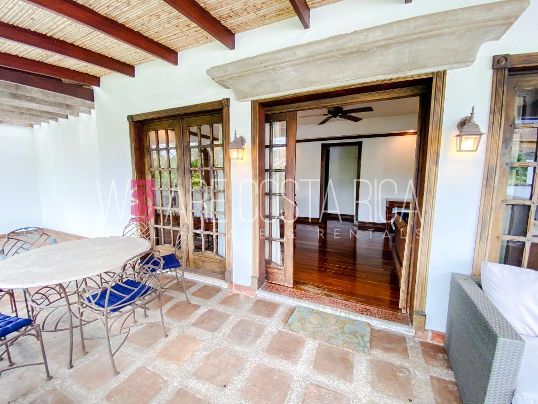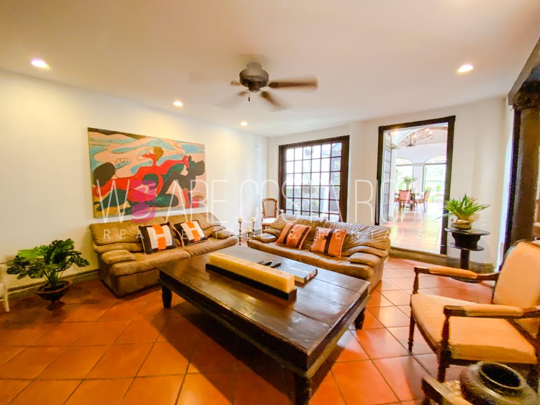 ID# 115795. Venta de casa estilo colonial en Los Laureles, Escazú, 820 m2 de construcción, 1.052 m2 de terreno, 5 habitaciones, 5.5 baños, US$850.000 (Financiamiento disponible por parte del propietario). Hermosa casa tradicional de 2 pisos con un encanto único. Cuenta con una elegante arquitectura colonial que incluye columnas decorativas, puertas y ventanas francesas de madera, amplias terrazas y cielos altos abovedados de ladrillo. Cuenta con amplios espacios con mucha luz natural y ventilación, tanto en áreas sociales como privadas. Sala de estar y comedor formal que se conectan a las terrazas y al jardín. Cocina de lujo, separada, con sobres de granito, mucho espacio de almacenaje, desayunador y electrodomésticos de alta gama. Hay 2 salas de TV, área de lavado, cuarto de servicio con baño, 2 oficinas y garaje para 5 vehículos. El área privada cuenta con 5 amplios dormitorios con finos pisos de madera. Todos tienen su propio baño y closets, pero el principal tiene walk-in closet. La propiedad tiene una excelente ubicación dentro del barrio residencial Los Laureles. Es una zona segura y tranquila en el muy buscado distrito de San Rafael en Escazú. Cerca de una amplia variedad de amenidades y servicios urbanos.