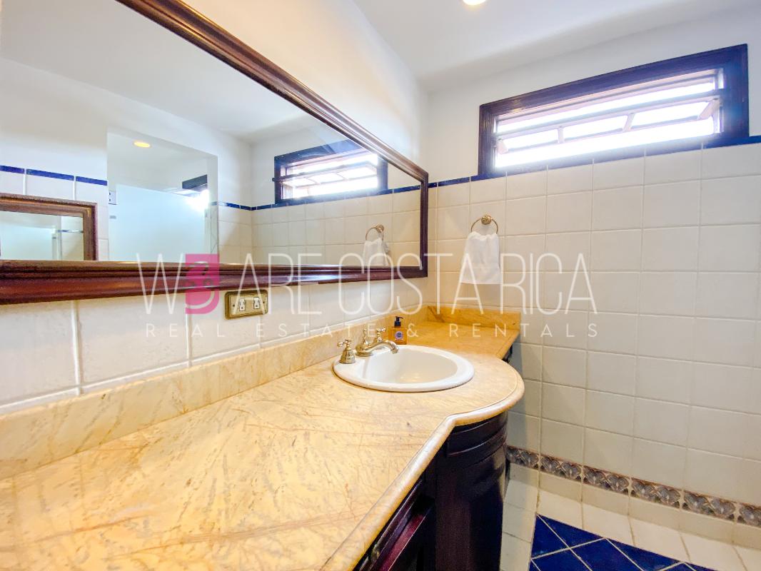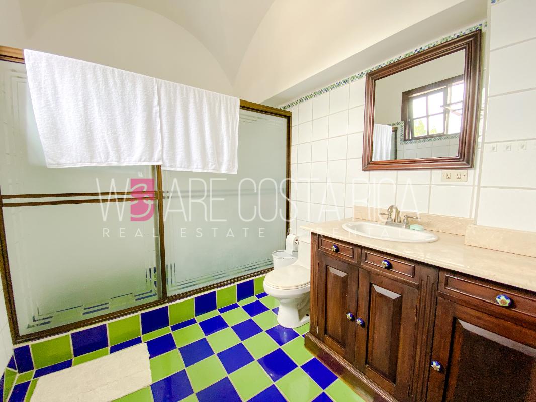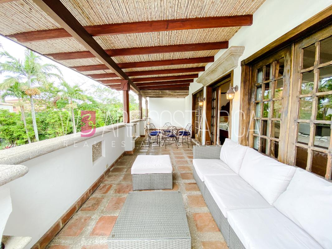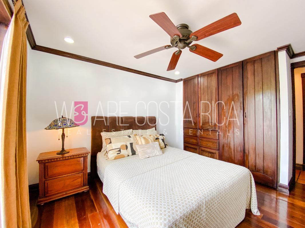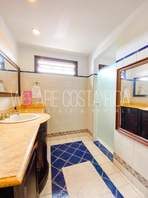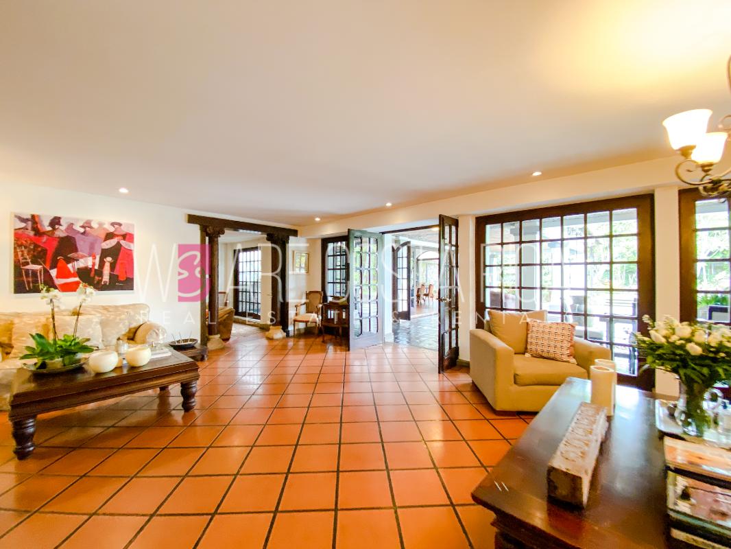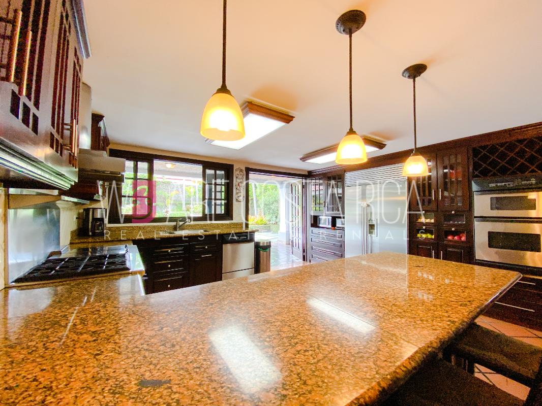 ID# 115795. Venta de casa estilo colonial en Los Laureles, Escazú, 820 m2 de construcción, 1.052 m2 de terreno, 5 habitaciones, 5.5 baños, US$850.000 (Financiamiento disponible por parte del propietario). Hermosa casa tradicional de 2 pisos con un encanto único. Cuenta con una elegante arquitectura colonial que incluye columnas decorativas, puertas y ventanas francesas de madera, amplias terrazas y cielos altos abovedados de ladrillo. Cuenta con amplios espacios con mucha luz natural y ventilación, tanto en áreas sociales como privadas. Sala de estar y comedor formal que se conectan a las terrazas y al jardín. Cocina de lujo, separada, con sobres de granito, mucho espacio de almacenaje, desayunador y electrodomésticos de alta gama. Hay 2 salas de TV, área de lavado, cuarto de servicio con baño, 2 oficinas y garaje para 5 vehículos. El área privada cuenta con 5 amplios dormitorios con finos pisos de madera. Todos tienen su propio baño y closets, pero el principal tiene walk-in closet. La propiedad tiene una excelente ubicación dentro del barrio residencial Los Laureles. Es una zona segura y tranquila en el muy buscado distrito de San Rafael en Escazú. Cerca de una amplia variedad de amenidades y servicios urbanos.
