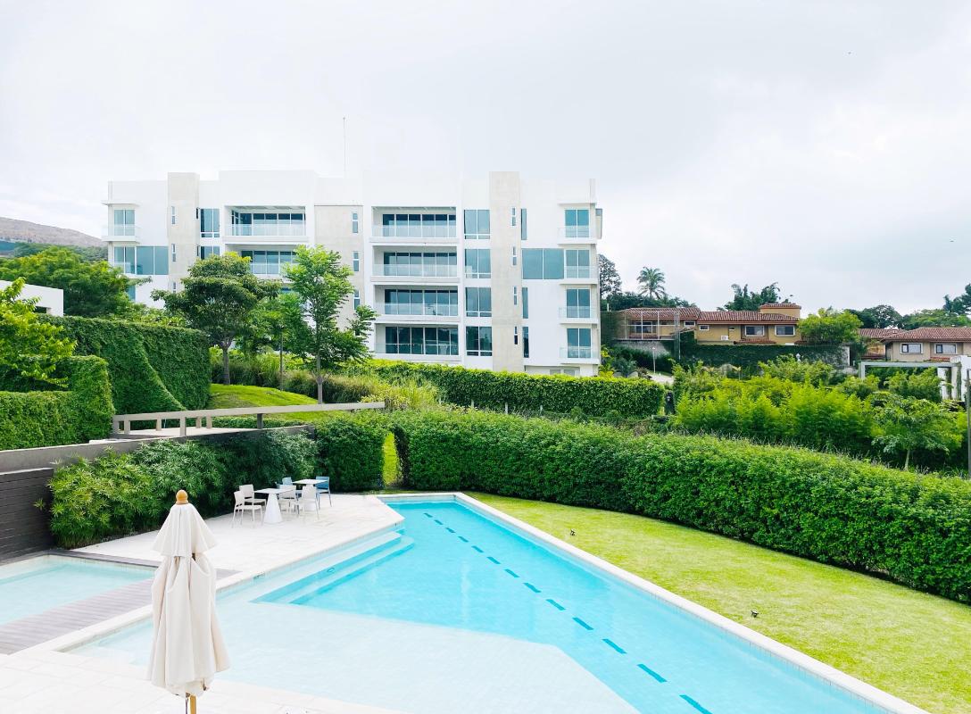 ID# 115813. Ample apartment for sale in Escazú, Dukana condominium, 184 sqm, 3 bedrooms, 2.5 baths, US$435.000. Brand new apartment with contemporary design and deluxe finishes throughout. Great open concept with living, dining and integrated kitchen. This space has floor-to-ceiling windows and a fabulous panoramic view. Good natural light and ventilation. Master bedroom with private bath and walk-in closet. The secondary bedrooms share a full bath. There’s also a half bath, a TV room and internal laundry. The apartment disposes of 2 parking spaces and a bodega (28 sqm). The condominium offers 24/7 security. Its amenities comprehend club house, playground, BBQ area, gym, pool, pet-park and plant nursery.