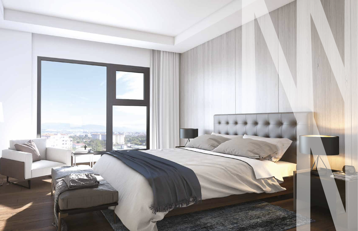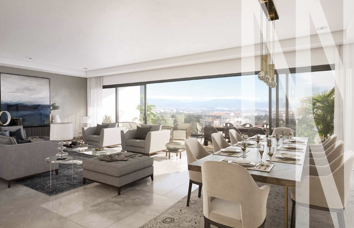 ID# 115888. Modern penthouse for sale in Escazú, Zenna condominium, 324 sqm, 3 bedrooms, 3.5 baths, US$860.000 (models 4D). New penthouse especially designed with ample spaces where vast natural light oozes through and stunning panoramic views can be enjoyed from multiple spots. The social area has an open concept distribution with integrated kitchen. This space opens to a terrace with sitting area and views. All the bedrooms are very spacious and comfy. They all have en-suite bath, hardwood flooring and A/C. The apartment has also TV room, laundry area and full service room. A 29-sqm space for 2vehicles plus a bodega located on the building’s basement. Access through a private elevator that opens directly to the penthouse. Zenna condominium offers a 24/7 security system with controlled access. Amenities: club house, pool, gym, yoga room, pet park, lounge, co-working space and business center. Excellent location, near La Paco shopping center, and with multiple accesses and exits to Santa Ana, Escazú, and San José.