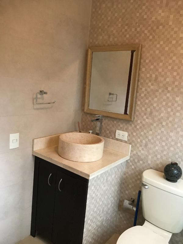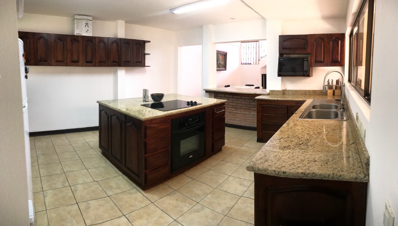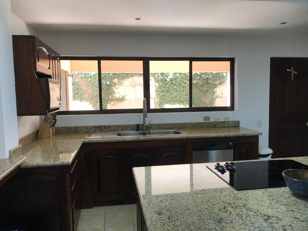 ID# 115907. Independent house for rent in San Antonio, Belén, 250 sqm construction, 340 sqm land, 4 bedrooms, 3 baths, US$1.400/mo + IVA. Two-story house with traditional design, clear and ample spaces, good natural light and fine finishes. Social area featuring an open concept layout with double height ceilings. Terrace with BBQ area that connects directly to the large backyard. Separated kitchen, fully furnished, with breakfast nook, granite countertops, and built-in appliances (vitroceramics top-stove, oven and dishwasher). There is also office, bodega and laundry room. Parking space for several vehicles. The second floor features a very ample master bedroom with private bath and walk-in closet. It also has an A/C unit, the same as one secondary bedroom. Large attic for storage. The property is very secure, it has perimeter wall and main access through electric gate. It has good location, with easy access and close to schools, business centers and shopping malls. Optional: rented furnished.