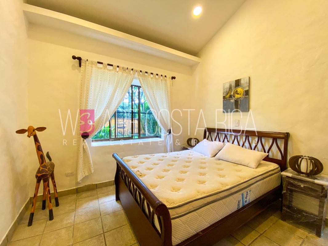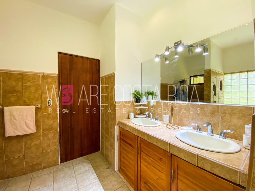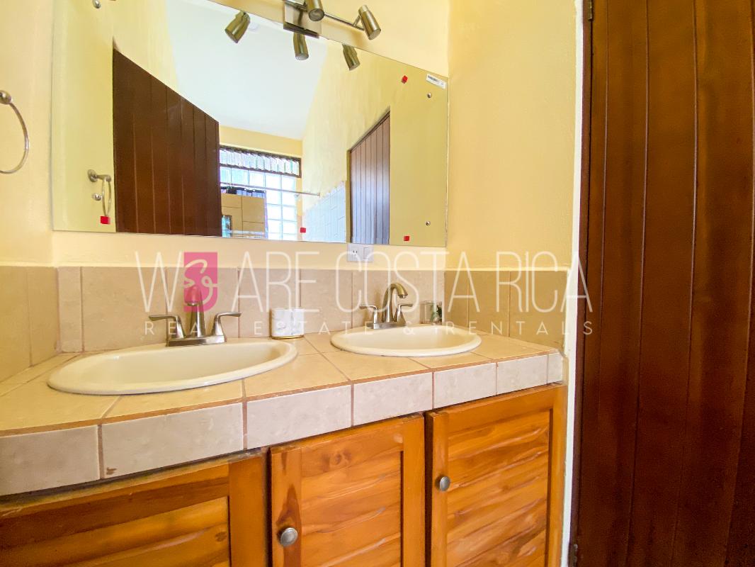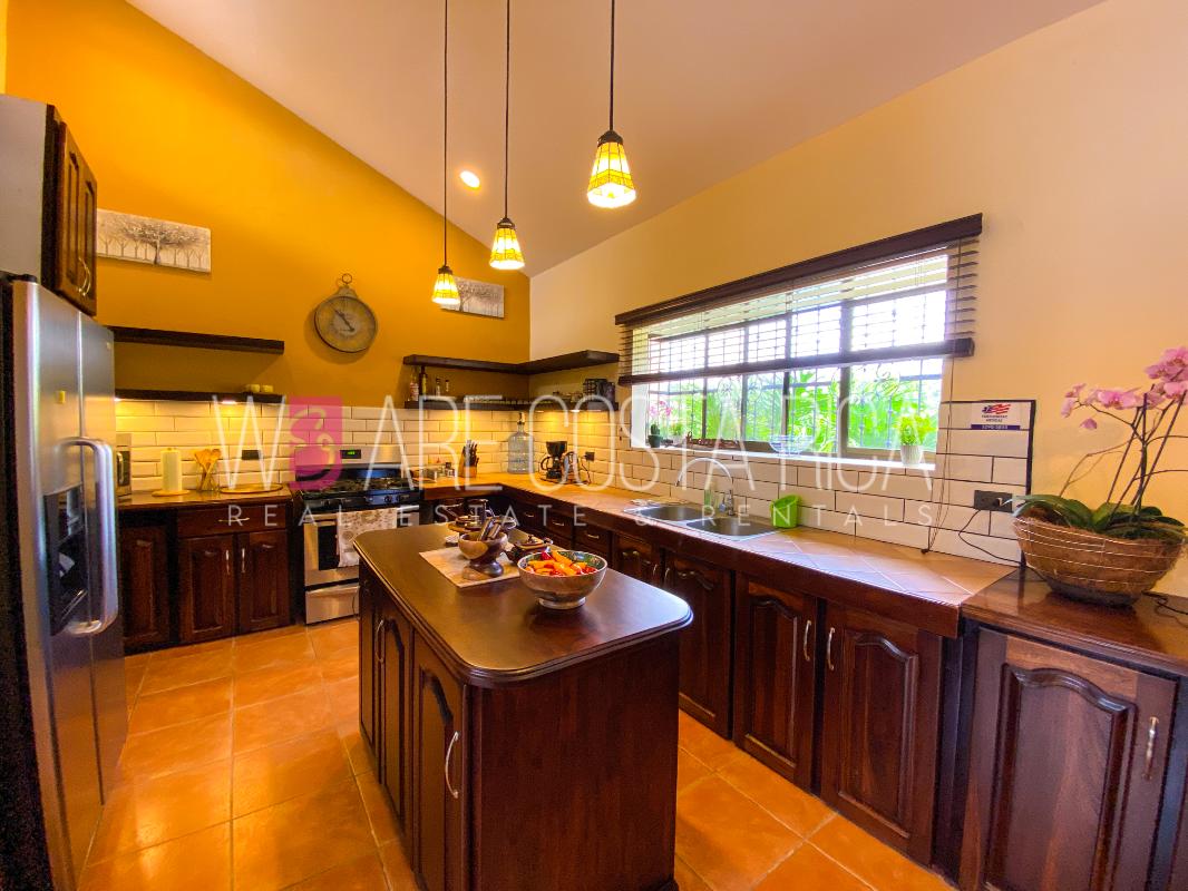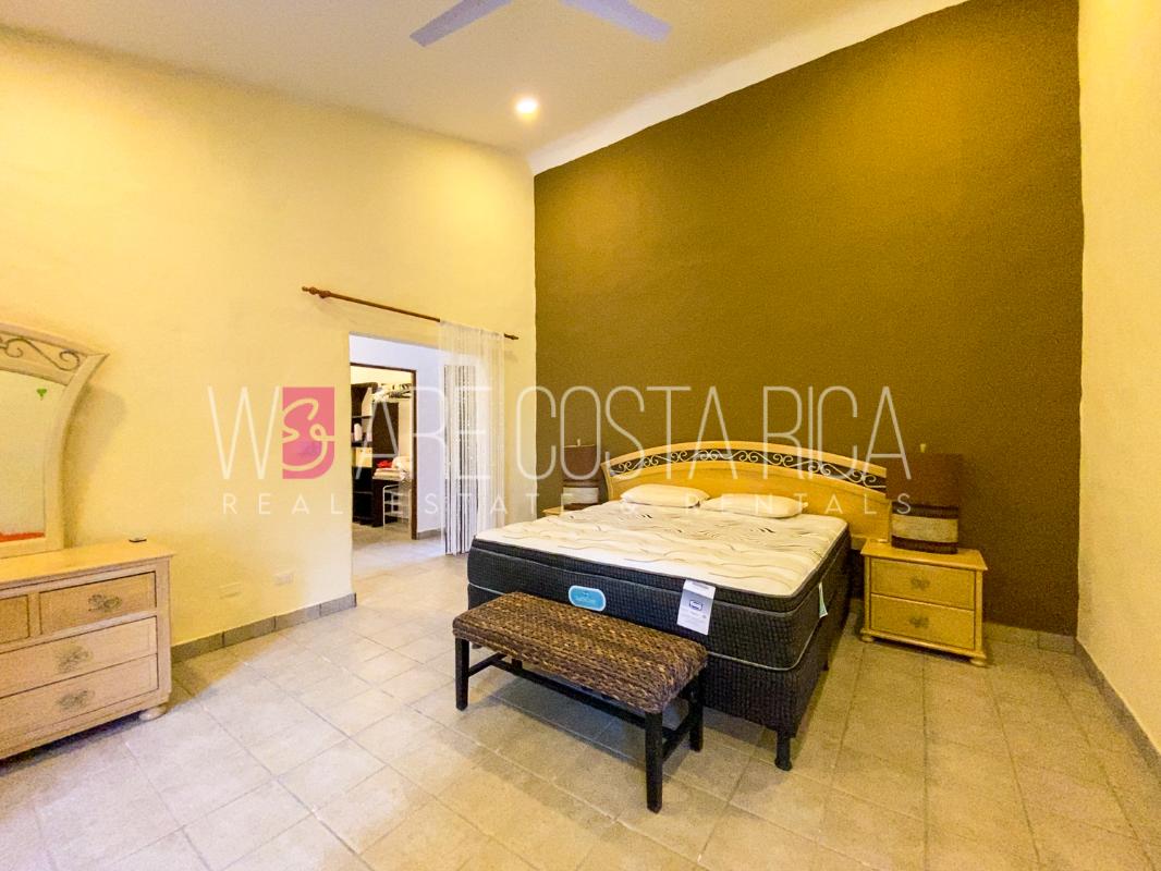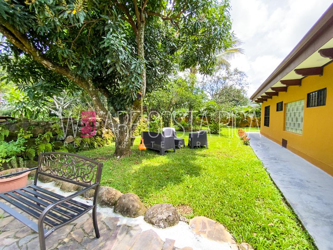 ID# 115914. Beautiful house for sale or rent in La Guácima, Hacienda Los Reyes, 623 sqmt construction, 1.153 sqmt land, 7 bedrooms, 3.5 baths, US$490.000 or US$3.000/mo (negotiable). Beautiful house that has a ranch-style architecture with ample spaces, fresh, wooden customized details, all in one level and it’s totally furnished! It has a large internal center terrace, fully covered by a huge vaulted skylight which provides maximum natural light to the entire house. The different spaces are distributed around this terrace, all of them with high ceilings. The kitchen, dinette and formal dining share one area; the living room and other terraces are in a separate area, as well as the bedrooms. There is an office that could be used as extra bedroom. The master bedroom has bath with jacuzzi. A beautiful landscaped garden surrounds the property. It also has full service room, bodega and closed garage for 2 vehicles. This property is located in Hacienda Los Reyes, an exclusive residential complex that offers 24/7 security and great amenities like its a golf course, club house, tennis courts, gym, and swimming pools. It is strategically located close to a variety of urban facilities, the international airport and private schools.