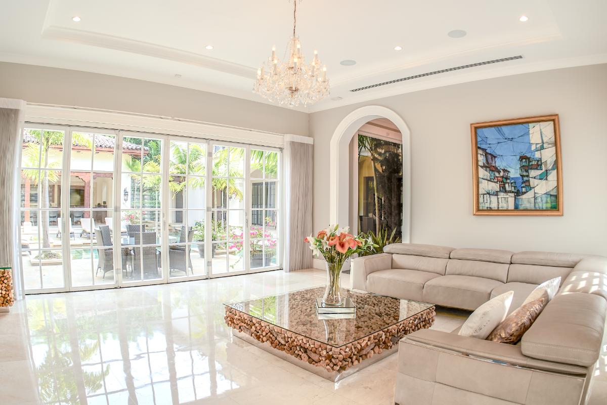ID# 117134. Villa di Lago, Hacienda del Bosque condominium, Santa Ana. 4 bedrooms, 4 bathrooms, 1,055 sqm of construction, 1,531 sqm of land, US$4,850,000. Located in the exclusive La Hacienda del Bosque condominium in Santa Ana, one of Costa Rica's most prestigious private developments, Villa Di Lago blends the elegance of European classical architecture with contemporary designs using bespoke materials and furniture of the highest quality. Every detail of this residence has been meticulously crafted to reflect a sophisticated and timeless style. Upon entering the elegant front door, a vibrant interior unfolds, balancing distinction with impeccable interior design. Villa Di Lago showcases architectural grandeur with spacious rooms, select materials, and a design incorporating personalized elements, beautiful gardens, and a private pool. The residence offers luxury finishes and state-of-the-art amenities, ensuring optimal privacy and security. It features two living areas, a main dining room, a breakfast area integrated with a terrace, a gourmet kitchen, and a gym, all connected to tranquil gardens surrounding the property. The impressive heated pool, built with imported Colombian colonial stone, complements multiple terraces and an entertainment area with barbecue, pizza oven, and guest bathroom. The residence is situated in La Hacienda del Bosque, a residential project inspired by classic Costa Rican architecture, located in the Rio Oro district of Santa Ana. This exclusive development on nearly flat land of 23 hectares comprises 119 lots within a gated community, monitored by a single entrance. It offers amenities such as two tennis courts, a clubhouse with pools, a gym, spa, yoga room, playground, extensive green areas with integrated lakes and fountains. La Hacienda's clubhouse, designed with rustic elements and quality finishes, provides a relaxing space reminiscent of rural haciendas. With tile roofs, stucco, and wood details both inside and out, the clubhouse is divided into social and spa areas, connected by a corridor surrounding a central water feature amid vegetation for added privacy. Villa Di Lago is a unique property designed for discerning owners with refined international tastes. Its interiors are meticulously designed to blend comfort and functionality, while spacious open areas and tall windows provide luminosity and a sense of expansiveness. Well-maintained gardens and outdoor entertainment areas perfectly complement Costa Rica's tropical lifestyle, offering a private pool as a tranquil oasis. Additionally, its strategic location provides easy access to Route 27, leading to renowned hospitals like El Cima, shopping centers like Multiplaza Escazú, and the main beaches of Costa Rica's Pacific coast. The property is sold fully furnished with high-end furniture and selected art, offering new owners a luxurious, move-in-ready living experience.