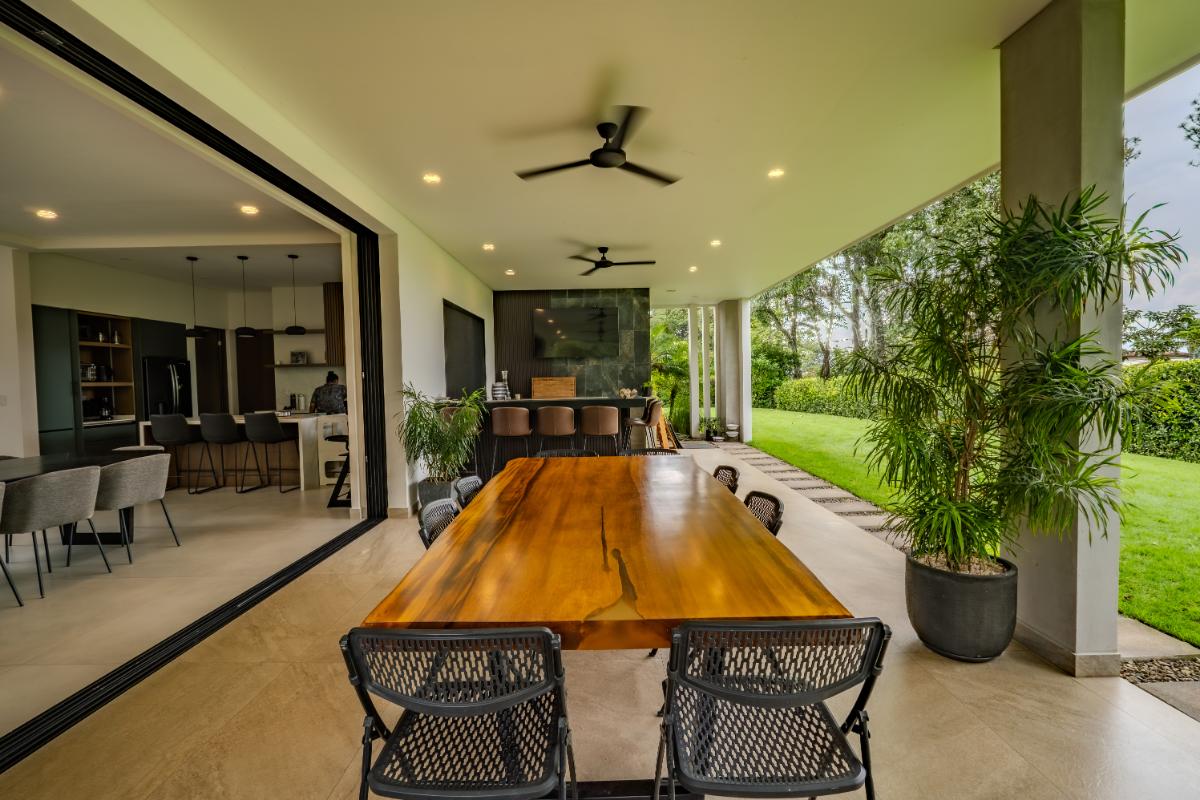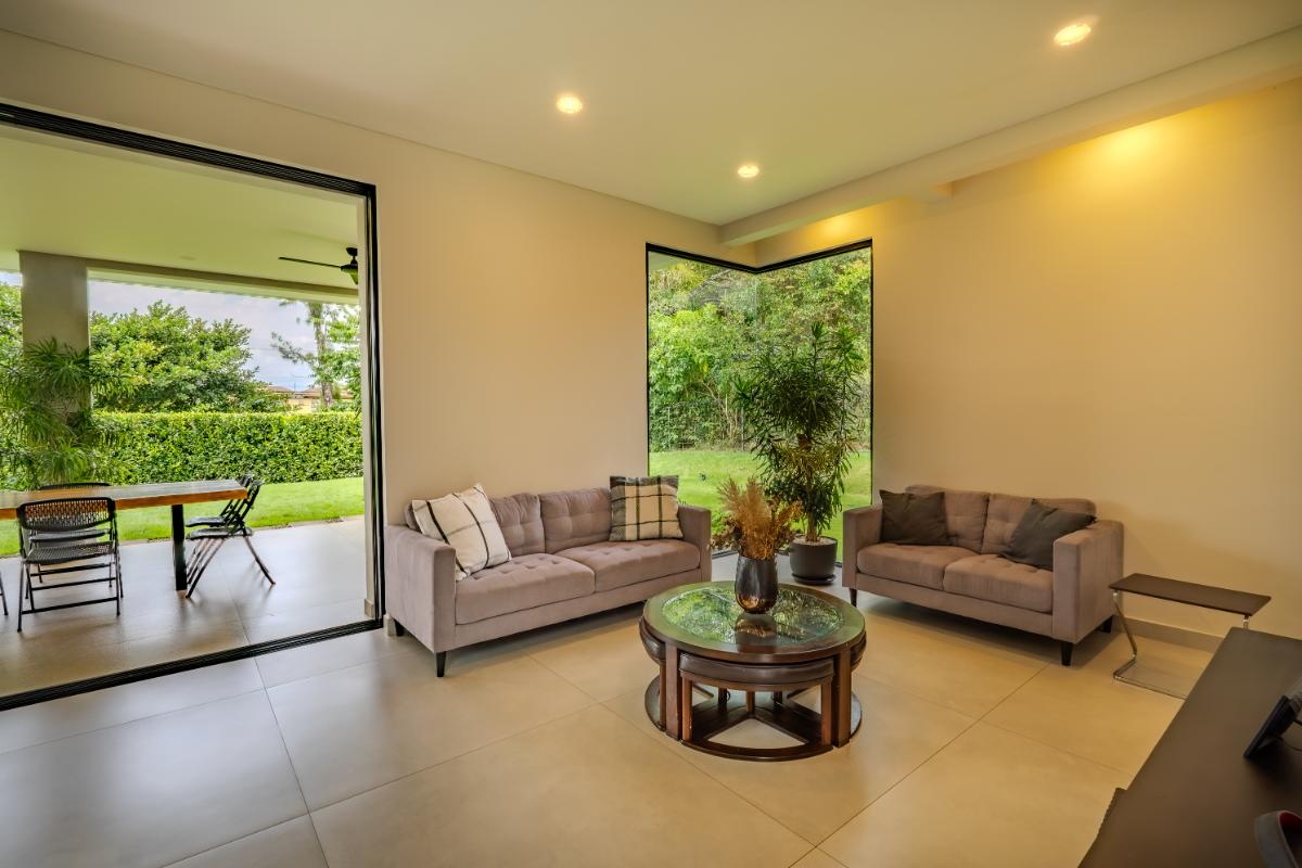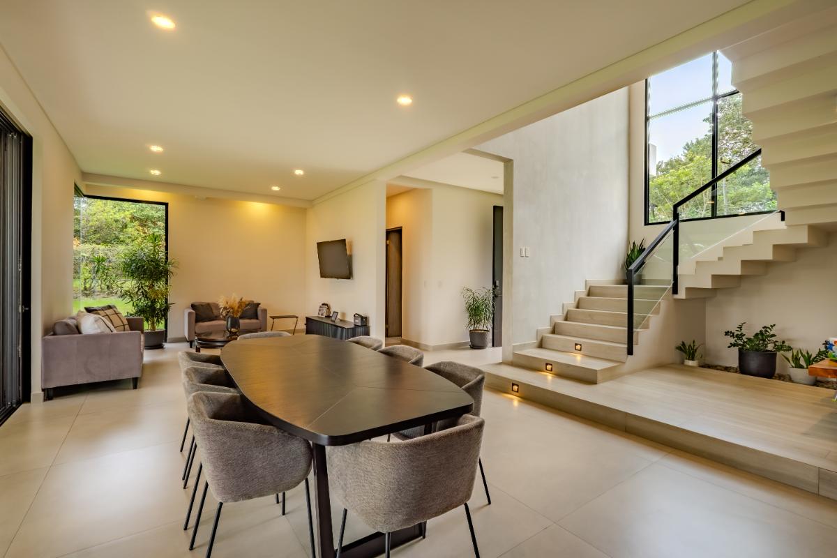 ID# 117419. Luxury home for sale in La Guácima, Hacienda Los Reyes condominium, 463 sqm construction, 1.218 sqm land, 4 bedrooms, 5 baths, US$890.000. Nestled within this exclusive community of Hacienda Los Reyes, we present a stunning single-family home with a contemporary design that exudes elegance and comfort. Boasting an expansive lot of 1200 square meters and a generous construction size of 463 square meters, this residence offers an abundance of space for you and your family to create cherished memories. As you enter this architectural masterpiece, you are greeted by a grand hall that sets the stage for the splendor that awaits. The meticulously designed interiors showcase impeccable attention to detail and a seamless blend of modern aesthetics with functional living spaces. With two floors of carefully curated luxury, this residence offers a lifestyle beyond compare. The heart of this magnificent home is found in its spacious dining room and gourmet kitchen, where culinary delights are brought to life. Imagine hosting lavish dinner parties, creating culinary masterpieces, or simply enjoying intimate family meals in this stylish setting. The kitchen is equipped with state-of-the-art appliances, ample storage space, and premium finishes, making it a haven for any discerning chef. For those seeking a private sanctuary to work from home or pursue personal endeavors, a thoughtfully designed office awaits. Complete with a full bathroom, it offers both privacy and convenience. This versatile space can also serve as a study, library, or even a guest suite to accommodate visiting friends and family. Beyond the main living areas, this residence boasts a service room with a full bathroom, providing comfort and privacy for live-in staff or guests. The convenience of a two-car garage, coupled with a spacious storage room, ensures that all your belongings are kept secure and organized. Step outside onto the terrace and be enveloped by the tranquility of nature. Perfect for entertaining or simply unwinding after a long day, this outdoor oasis offers a seamless transition between indoor and outdoor living. Breathe in the fresh air, soak up the sun, or relish in the joy of spending quality time with loved ones in this idyllic setting. As you explore the upper level, you will discover the master retreat, an epitome of luxury and relaxation. The master bedroom features a generous layout, providing ample space for a cozy sitting area. The en-suite bathroom is adorned with exquisite finishes, a spa-like soaking tub, and a walk-in closet that rivals those of high-end boutiques. This private haven offers a tranquil escape from the outside world, allowing you to rejuvenate and unwind in style. Additionally, three spacious secondary bedrooms await, each complete with its own en-suite bathroom and closet. These well-appointed rooms are designed with comfort and privacy in mind, catering to the needs of family members or guests alike. Whether you have a growing family or love to entertain, this home effortlessly accommodates your lifestyle. Beyond the unparalleled luxury found within this residence, Hacienda Los Reyes offers an array of exceptional amenities and conveniences that enrich your daily life. Residents of this exclusive community have access to a championship golf course, designed to challenge and delight golf enthusiasts of all levels. Take a leisurely stroll through the meticulously manicured gardens, indulge in a refreshing swim in the sparkling swimming pool, or engage in friendly matches on the tennis courts. The possibilities are endless within this sought-after enclave. Safety and security are paramount at Hacienda Los Reyes, ensuring peace of mind for you and your loved ones. The community features 24/7 security personnel and controlled access, providing a safe and tranquil environment for all residents. The well-designed infrastructure and meticulously maintained common areas further enhance the overall appeal of this exceptional residential condominium. From its contemporary design and expansive living spaces to the luxurious amenities and security features, every aspect of this residence has been thoughtfully crafted to exceed your expectations. Contact us today to arrange a private viewing and experience the epitome of refined living.