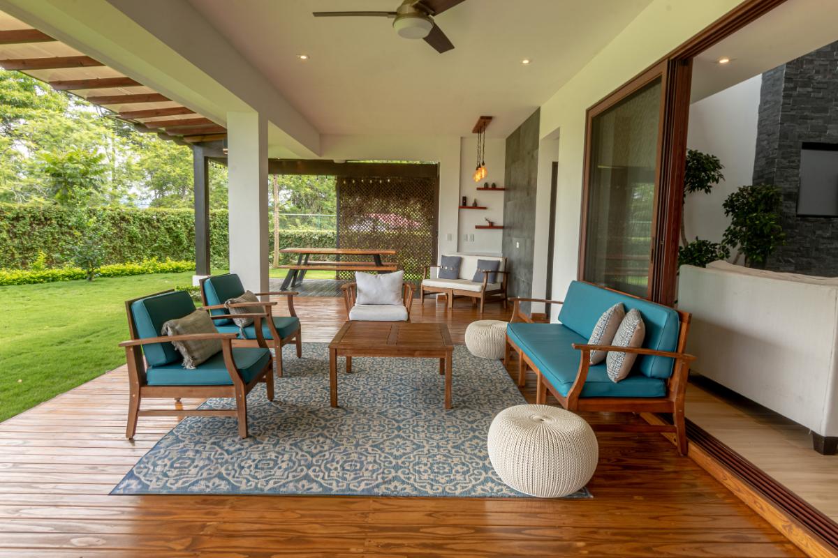 ID# 117443. Contemporary home for sale in Hacienda Los Reyes, La Guácima, Alajuela. 4 bedrooms, 3.5 bathrooms, 440 m² of construction, 787 m² of land, US $670,000. Located in the exclusive Los Manzanos condominium, this property combines spaciousness, comfort, and contemporary style surrounded by nature, in one of the most desirable and fastest-growing areas of the western Central Valley. Its open-concept design seamlessly connects the indoor social areas with the covered terrace and the expansive backyard, creating the perfect setting for family living and entertaining. High ceilings and floor-to-ceiling windows allow abundant natural light, enhancing the sense of freshness and openness throughout the home. The modern, fully equipped kitchen features a large central island with breakfast bar, direct and indirect lighting, and a layout ideal for those who appreciate both functionality and aesthetics. The private second floor hosts all bedrooms, including a generous primary suite with a walk-in closet, an en-suite bathroom with a hydro-massage tub, and a charming balcony with panoramic views that provide tranquility and a close connection to nature. The secondary bedrooms offer excellent cross ventilation, high-end finishes, and well-distributed spaces. On the main level, there is a laundry room, an unfinished service room, and a closed garage for two vehicles with additional outdoor parking. Los Manzanos is known for its safety, privacy, and family-oriented atmosphere within Hacienda Los Reyes, a prestigious Country Club-style community that offers world-class amenities such as a 9-hole golf course, recreational and semi-Olympic swimming pools, tennis courts, restaurants, picnic areas, and scenic walking trails. The complex also includes a polo club, large parks, lush green areas, and forest views that enhance its natural appeal. Strategically located, Hacienda Los Reyes offers a peaceful setting with quick access to Route 27 (connecting in minutes to Santa Ana, Escazú, and San José) and Route 121, making it ideal for professionals working in nearby business hubs like Lindora, Forum I and II, El Coyol, or La Sabana. Within 10 minutes, residents can access top schools such as GSD International School and Country Day School, as well as supermarkets, restaurants, clinics, and Los Reyes Shopping Center, which provides essential services and shops. Living in Los Manzanos means enjoying a natural, private, and secure environment with all the comforts of a high-end club community that perfectly balances residential living, wellness, and convenience.