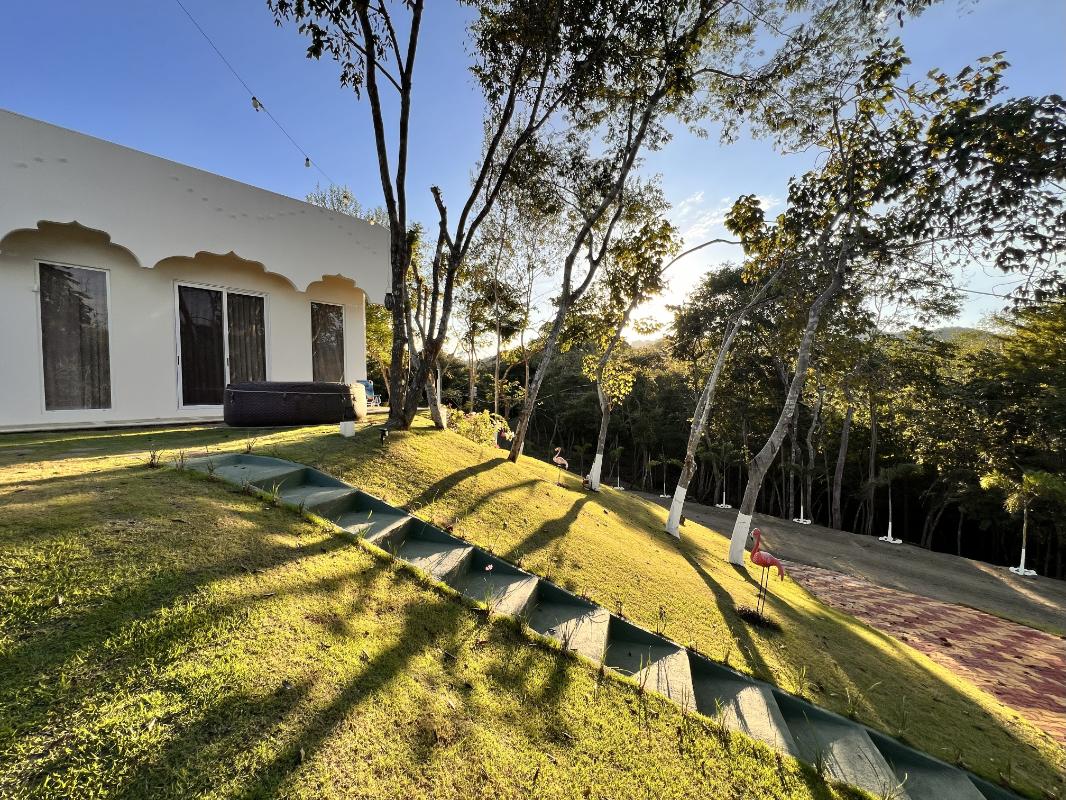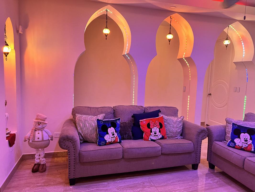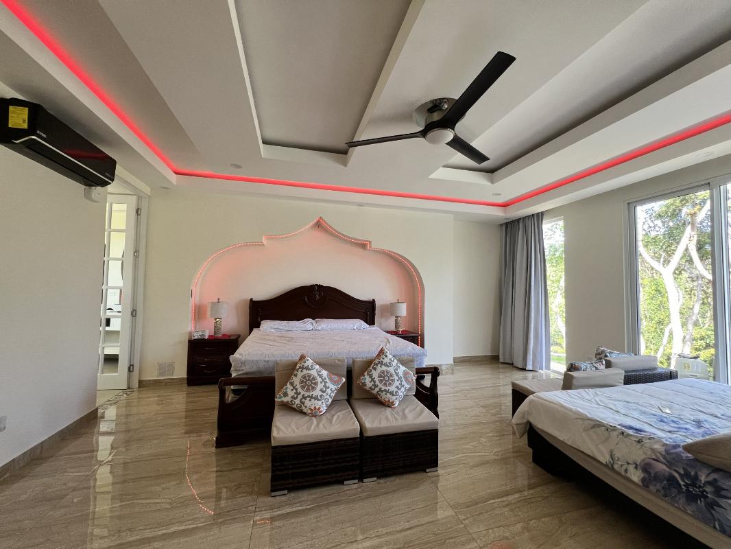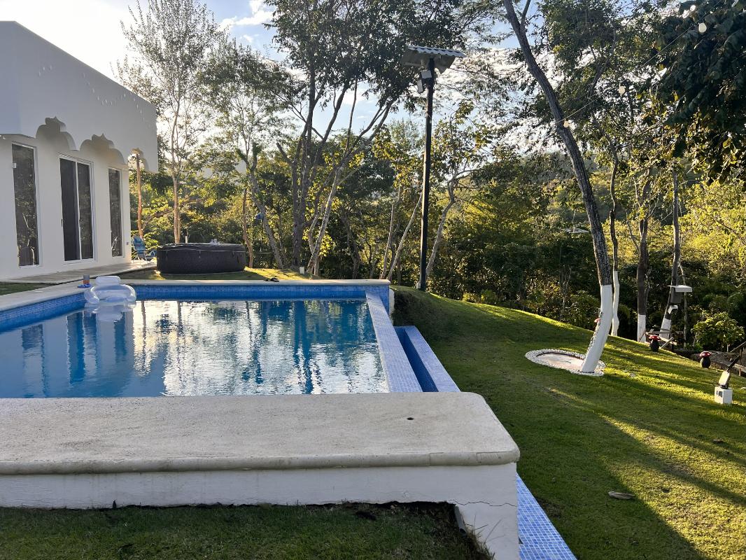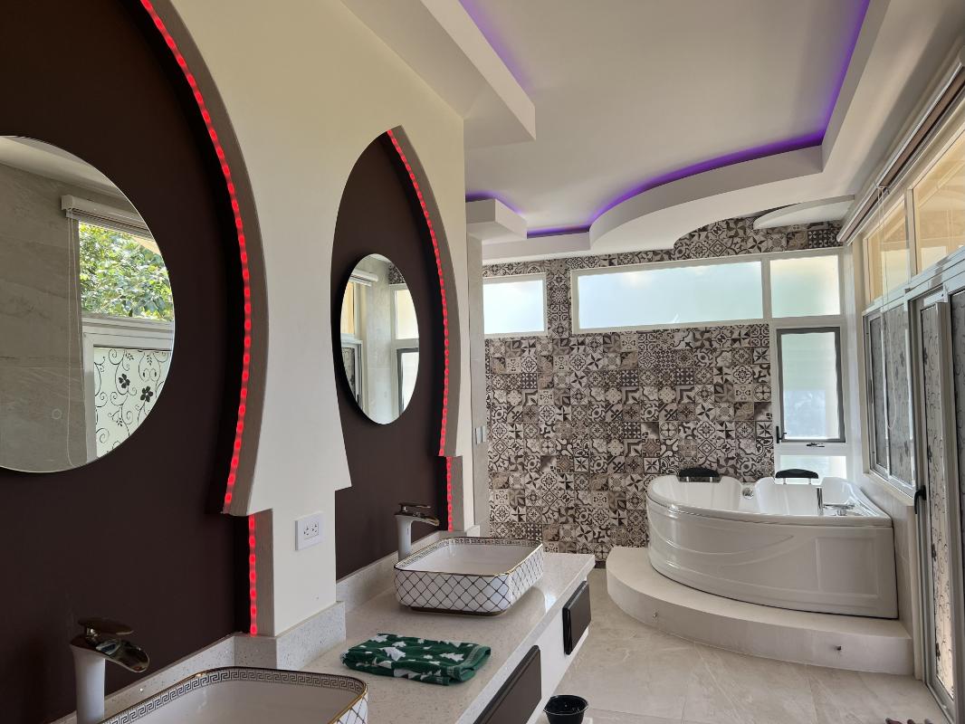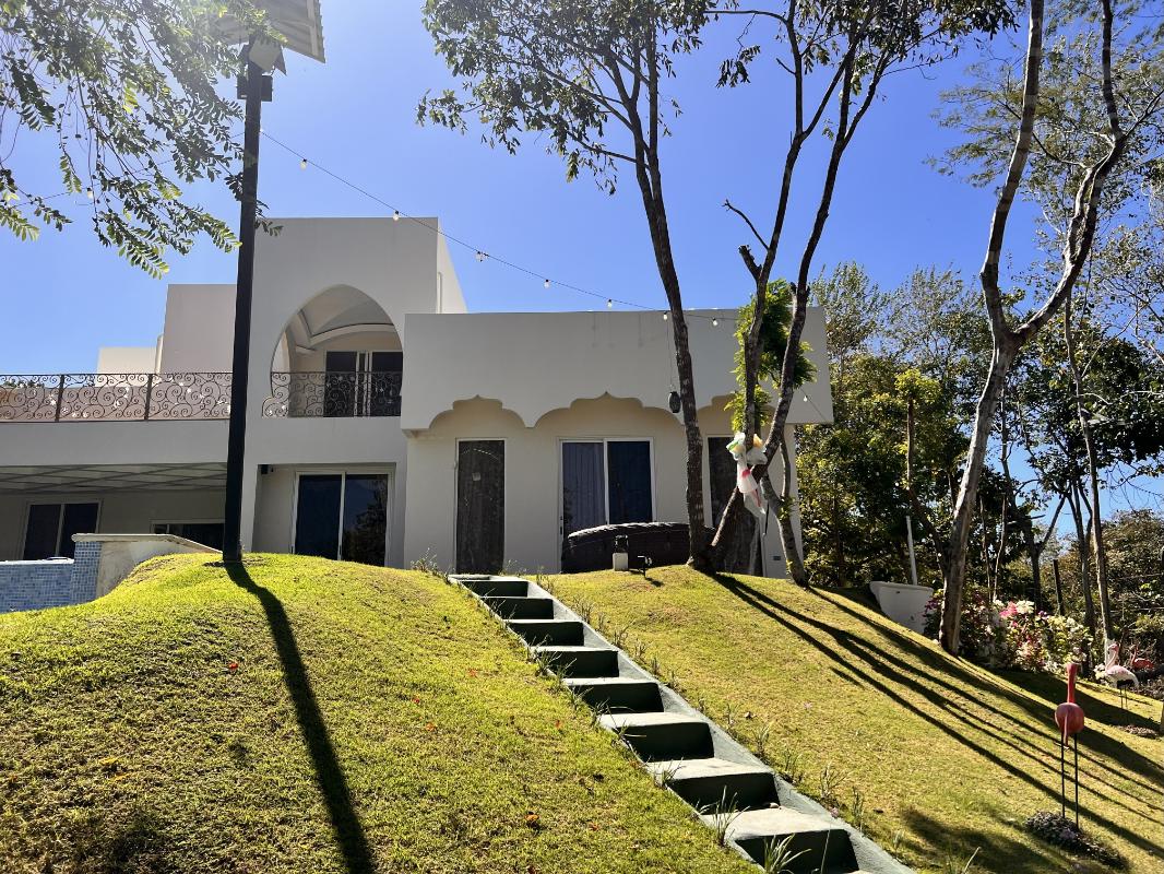 ID# 117444. House for Rent in Carrillo, Guanacaste. Lomas del Mar Condominium. 4 bedrooms, 4.5 bathrooms, 440 m² of construction, 787 m² of land, US $4,300. This spectacular Arab–Moroccan-inspired residence redefines residential luxury through a seamless fusion of elegance, technology, and comfort. With approximately 600 m² of construction and over 1,000 m² of private gardens, it offers a unique atmosphere that blends refined architectural details with a functional and contemporary design. Every space has been thoughtfully designed to provide a sensory experience, featuring intelligent ambient lighting, noble materials, warm textures, and a perfect integration between indoor and outdoor living. The social area is spacious and sophisticated, integrating the living room, dining area, and gourmet kitchen equipped with smart appliances, quartz countertops, and a breakfast bar overlooking the pool, which connects to two open terraces ideal for relaxation or entertaining. The master suite is a true retreat—elegant, spacious, and equipped with automation, integrated sound, and direct access to the pool and jacuzzi; its private bathroom combines luxury and technology with double sinks, illuminated jacuzzi, shower with three modes, and a high-end smart toilet. The three secondary bedrooms maintain the same level of comfort, featuring customizable lighting, air conditioning, and independent access. Outdoors, the property is designed for limitless enjoyment with a saltwater pool, open-air jacuzzi, bar with granite countertop, refrigerator, and TV, outdoor shower, and barbecue area surrounded by lush vegetation. Additionally, it features a professional Dolby Atmos home theater with projector, customized lighting, and reclining seats for an immersive entertainment experience. Other highlights include perimeter electronic security, solar panels, solar water heater, water filtration and softening system, covered parking, maintenance service included, and gated access through QR control. The community offers wide streets surrounded by nature, ocean views from its infinity pool in the common area, and a peaceful environment ideal for walking, cycling, or spending time with pets. Completed in 2023, this property perfectly combines exotic architecture, cutting-edge technology, and tropical serenity in a safe environment surrounded by nature and wildlife.