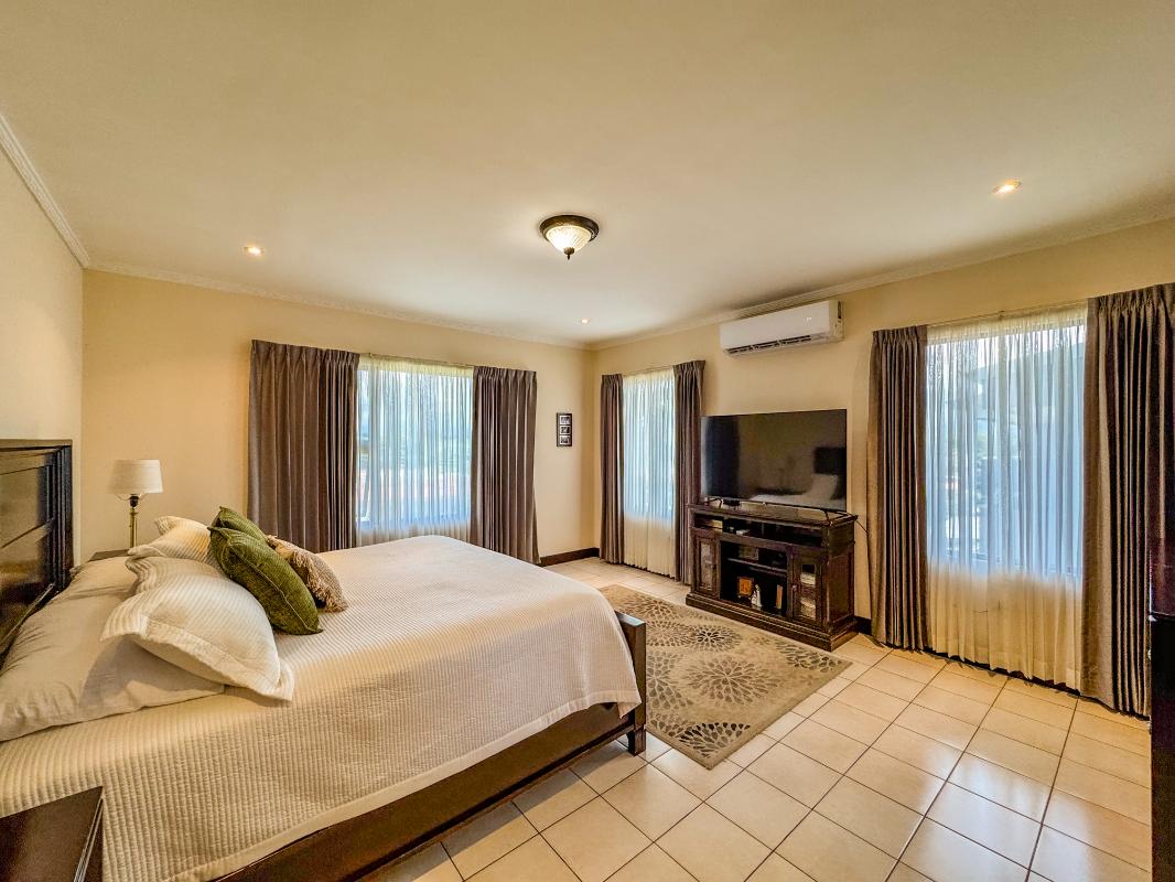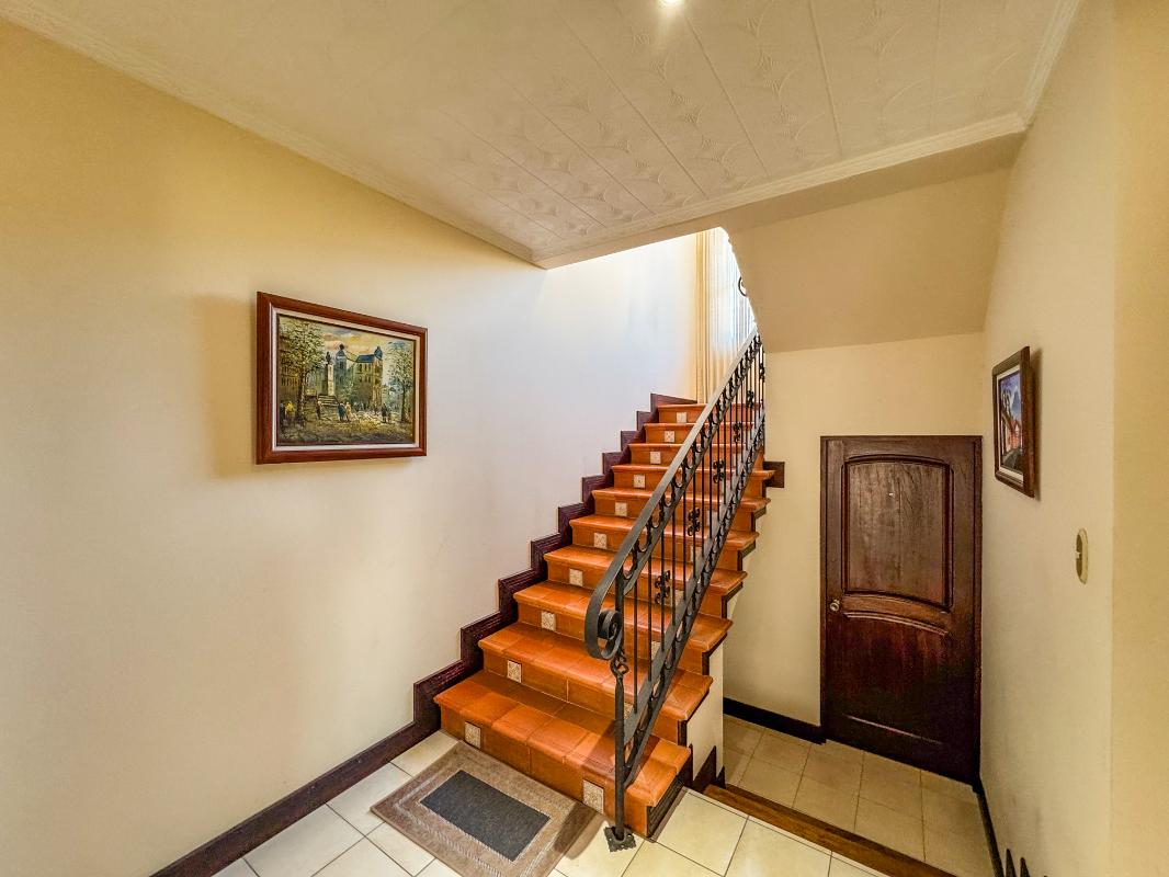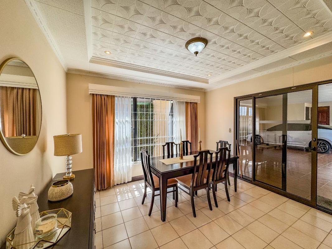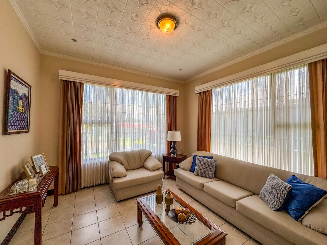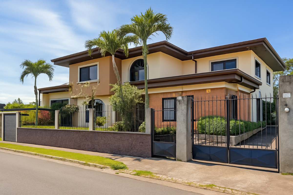 ID# 117450. House for Sale in La Guácima, Alajuela — 350 m² Construction | 756 m² Lot | US $480,000. This elegant two-story residence combines contemporary design, functionality, and a privileged location in one of the most convenient residential areas of La Guácima, Alajuela. Built on a 756 m² lot with a living area of 350 m², the property offers a perfect balance of space, privacy, and comfort—ideal for those seeking a peaceful and secure environment with excellent access to the main amenities of the western Central Valley. Its modern architecture stands out for its 15 cm solid concrete walls, the charm of clay brick, and decorative wood accents that add warmth and character. On the ground floor, the social areas are harmoniously integrated: a spacious living room, separate dining area, and breakfast nook connect to a functional kitchen with a pantry, ideal for family life. This level also includes a guest half bath, laundry room, and a private office that can be adapted as an additional bedroom. The second level houses three spacious bedrooms, all with built-in wooden closets; the primary suite features a walk-in closet and private bathroom, while the secondary bedrooms share a full bathroom and a cozy TV lounge that complements the private area. The house features gypsum and plaster ceilings, ceramic floors, and cross ventilation that keeps the interior fresh year-round. Outside, a garden surrounded by concrete perimeter walls ensures privacy and security, while the façade combines clean lines and natural materials that enhance its modern aesthetic. The covered garage accommodates two vehicles and includes an electric gate, alarm system, and perimeter electric fence. Its strategic location offers easy access to Plaza La Guácima, GSD International School, Auto Mercado, Farmacia Fischel, and Route 27, which connects quickly to Santa Ana, Escazú, and Juan Santamaría International Airport. This property represents an exceptional opportunity for those who value solid construction, contemporary design, and the convenience of living close to everything in a growing residential area with excellent value appreciation within the Greater Metropolitan Area.