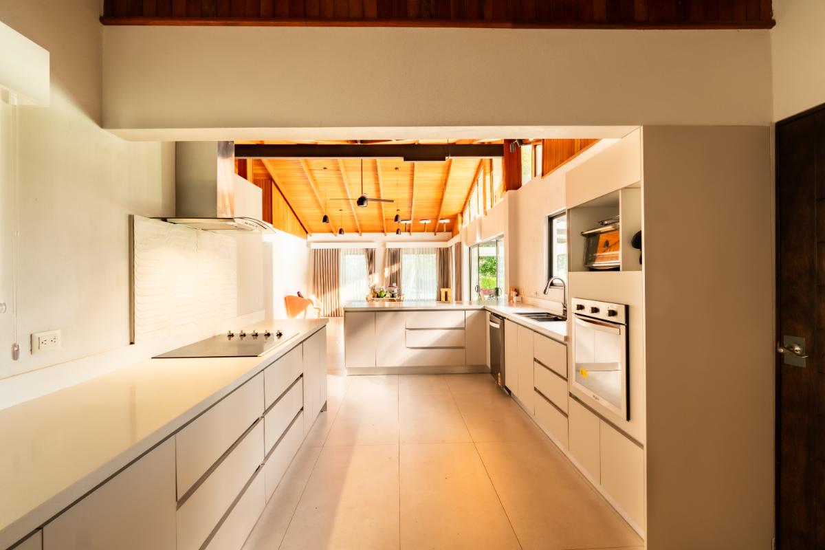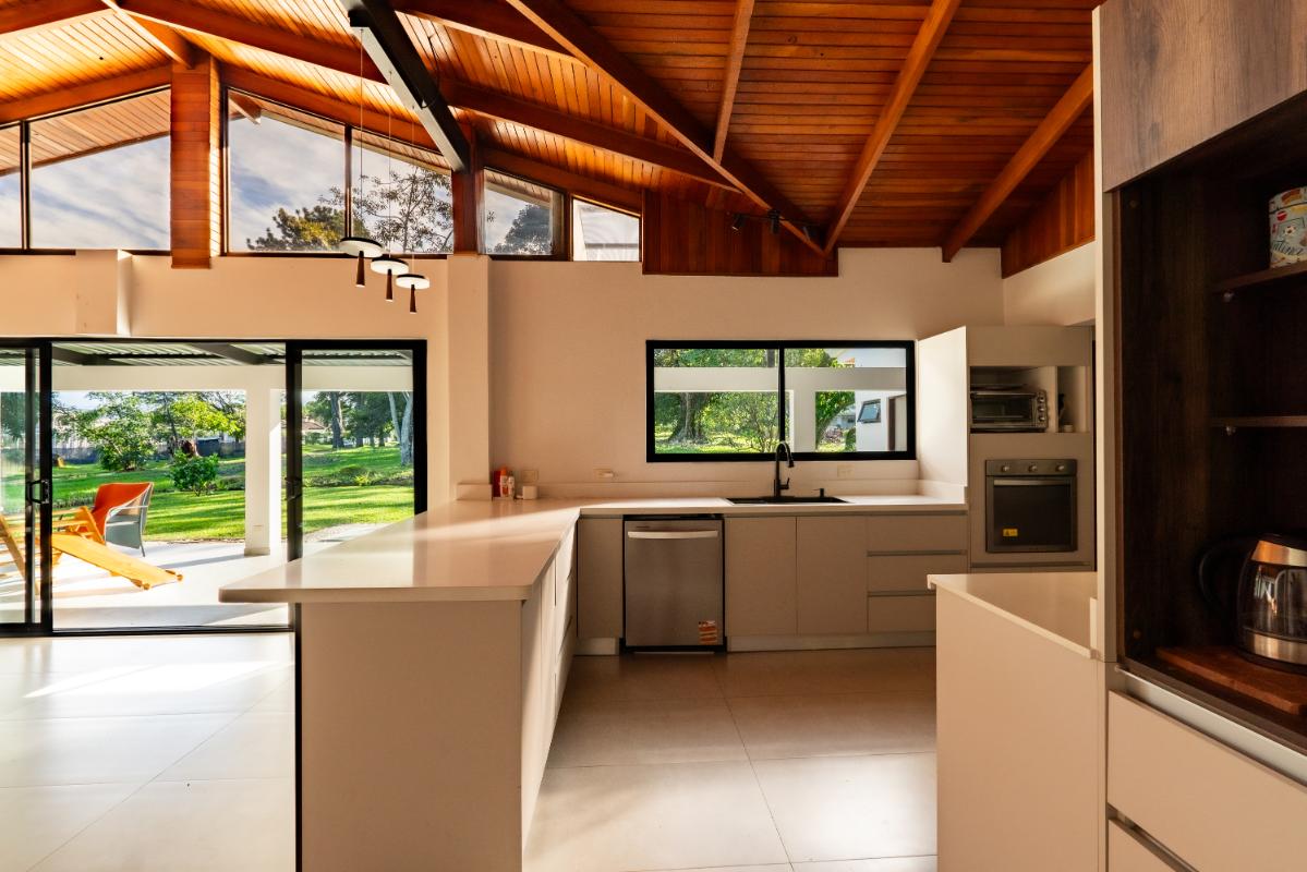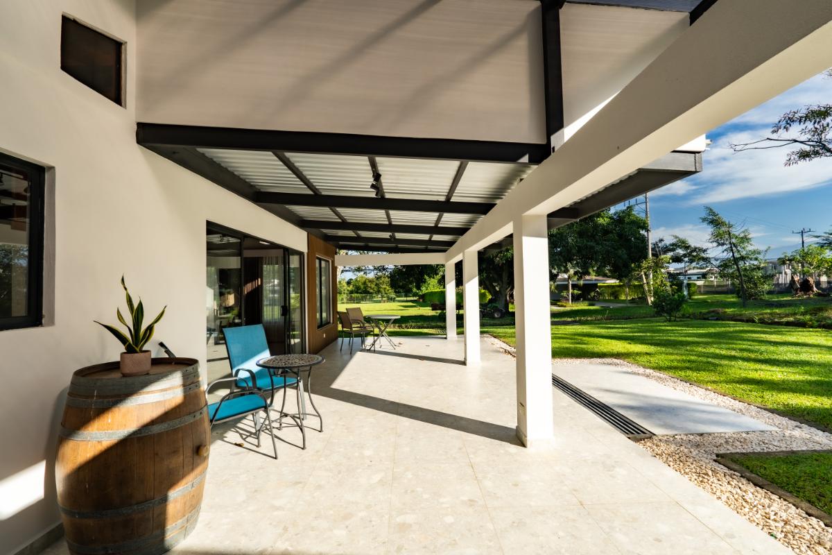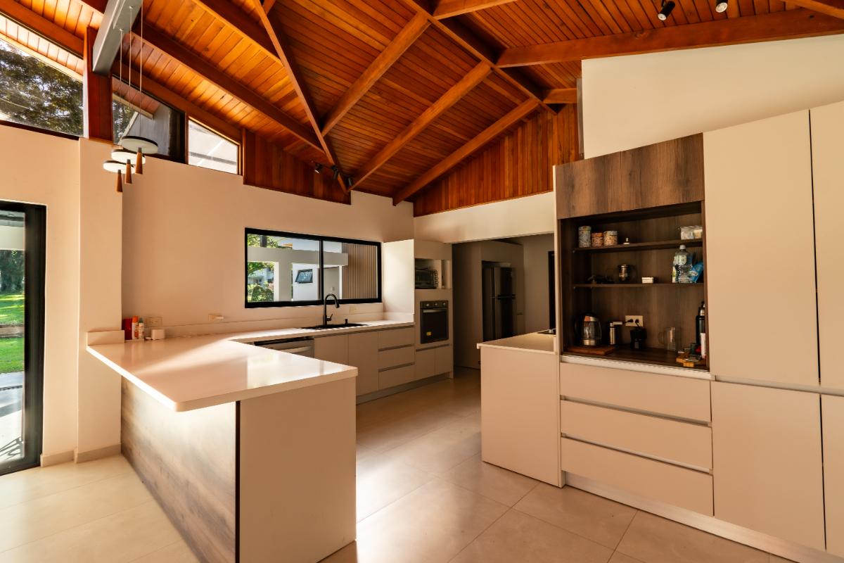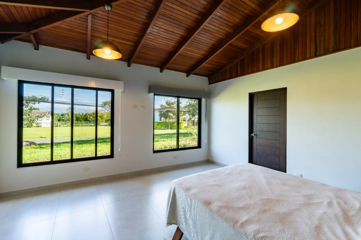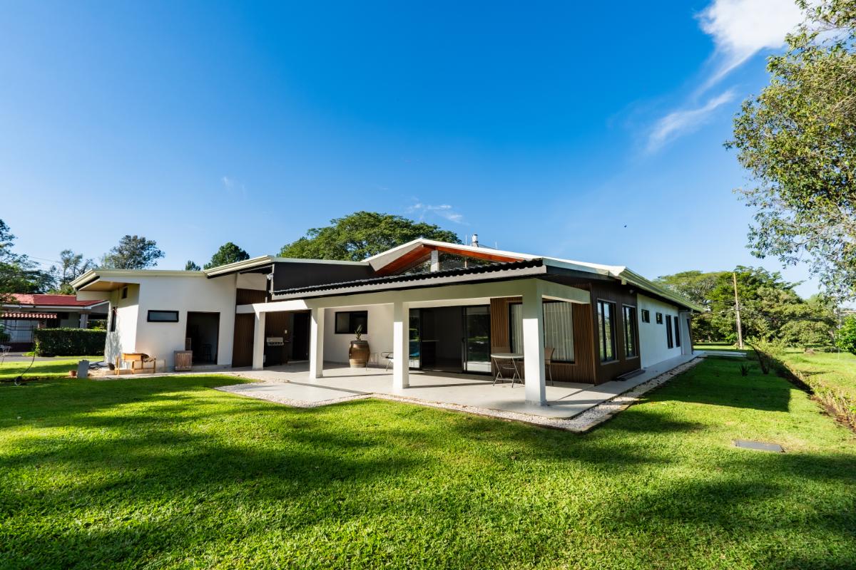 ID# 117456. Modern home for sale in Hacienda Los Reyes – 5 bedrooms, 4 bathrooms, 355 m² of construction, 1,125 m² of land, US$645,000. This contemporary residence in Hacienda Los Reyes stands out for its functional design, premium finishes, and high-end residential setting within one of the most exclusive areas of La Guácima, Alajuela. With 355 m² of construction on a generous 1,125 m² lot, this property offers an ideal lifestyle for those seeking a luxury home that is spacious, modern, and surrounded by nature inside a consolidated and highly sought-after gated community. The home features 5 bedrooms, 4 full bathrooms, integrated social areas, a kitchen with European materials, quartz countertops, large-format 60x120 flooring, fully tiled bathrooms, imported premium fixtures, a central water filtration system, and a 275-liter solar water heater—offering efficiency, durability, and an elevated residential experience. The layout includes a living room, dining room, terrace, TV room, and naturally illuminated spaces with excellent cross-ventilation. It also offers covered parking for 2 vehicles plus space for 4 additional parking spots. Hacienda Los Reyes is known as one of the most exclusive residential communities in the Greater Metropolitan Area (GAM), offering 24/7 security and top-tier amenities such as a golf course, tennis and basketball courts, swimming pools, gym, clubhouse, restaurant, walking trails, large green areas, and picnic zones. It is an ideal setting for those seeking a premium, safe, and family-friendly lifestyle. The property enjoys a strategic location with immediate access to Route 27, just minutes from Plaza La Guácima, Auto Mercado, restaurants, pharmacies, and essential services. It is also close to major free-trade zones such as Coyol Free Zone, Green Valley, and El Cafetal, as well as medical centers including Hospital Metropolitano and the new CIMA Hospital currently under construction. The area also offers supermarkets, shopping centers, private schools, and the Juan Santamaría International Airport. This is a unique opportunity to acquire a brand-new luxury home, move-in ready, with high appreciation potential in one of Costa Rica’s most prestigious residential communities—perfect for those seeking quality, security, and a premium residential lifestyle.