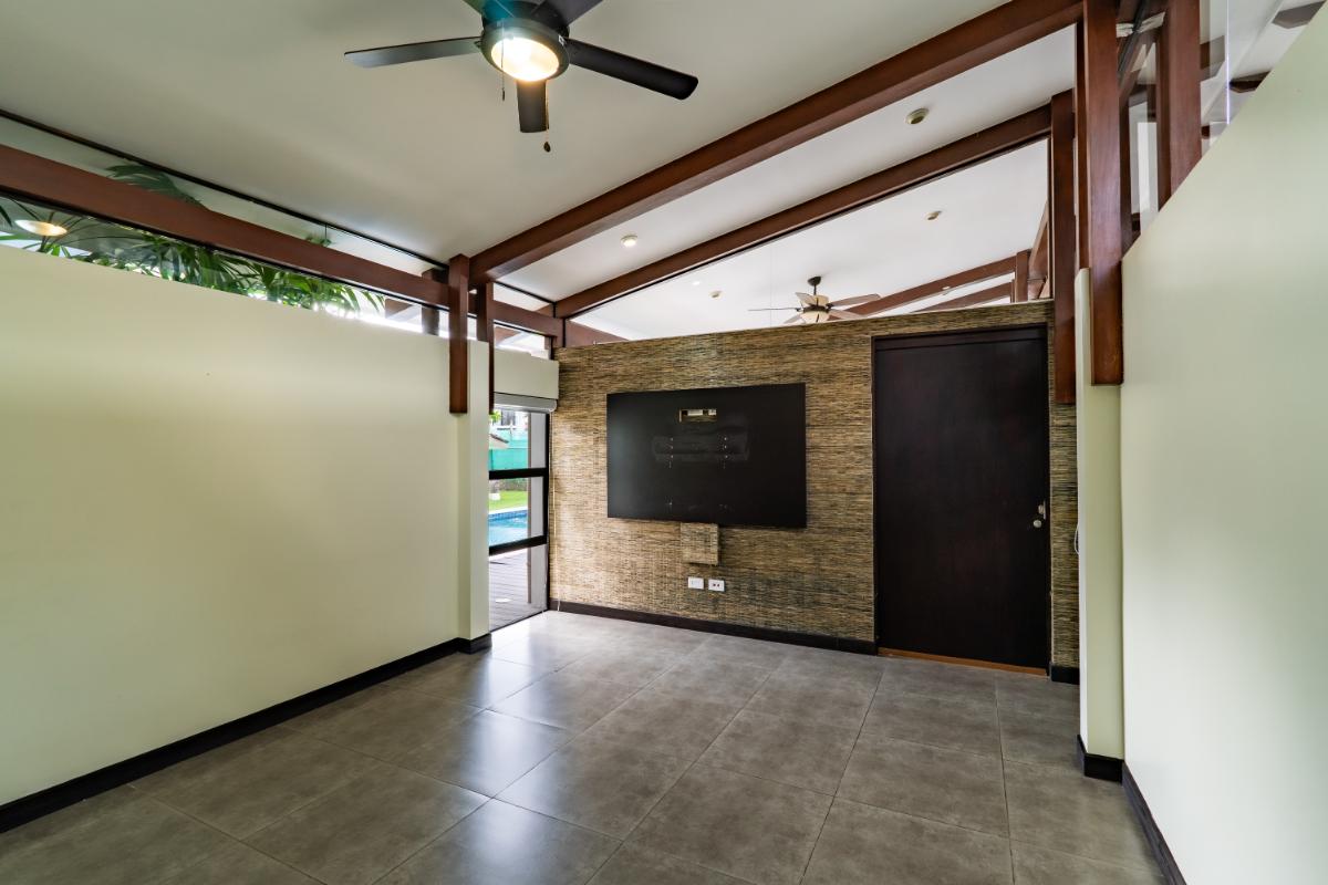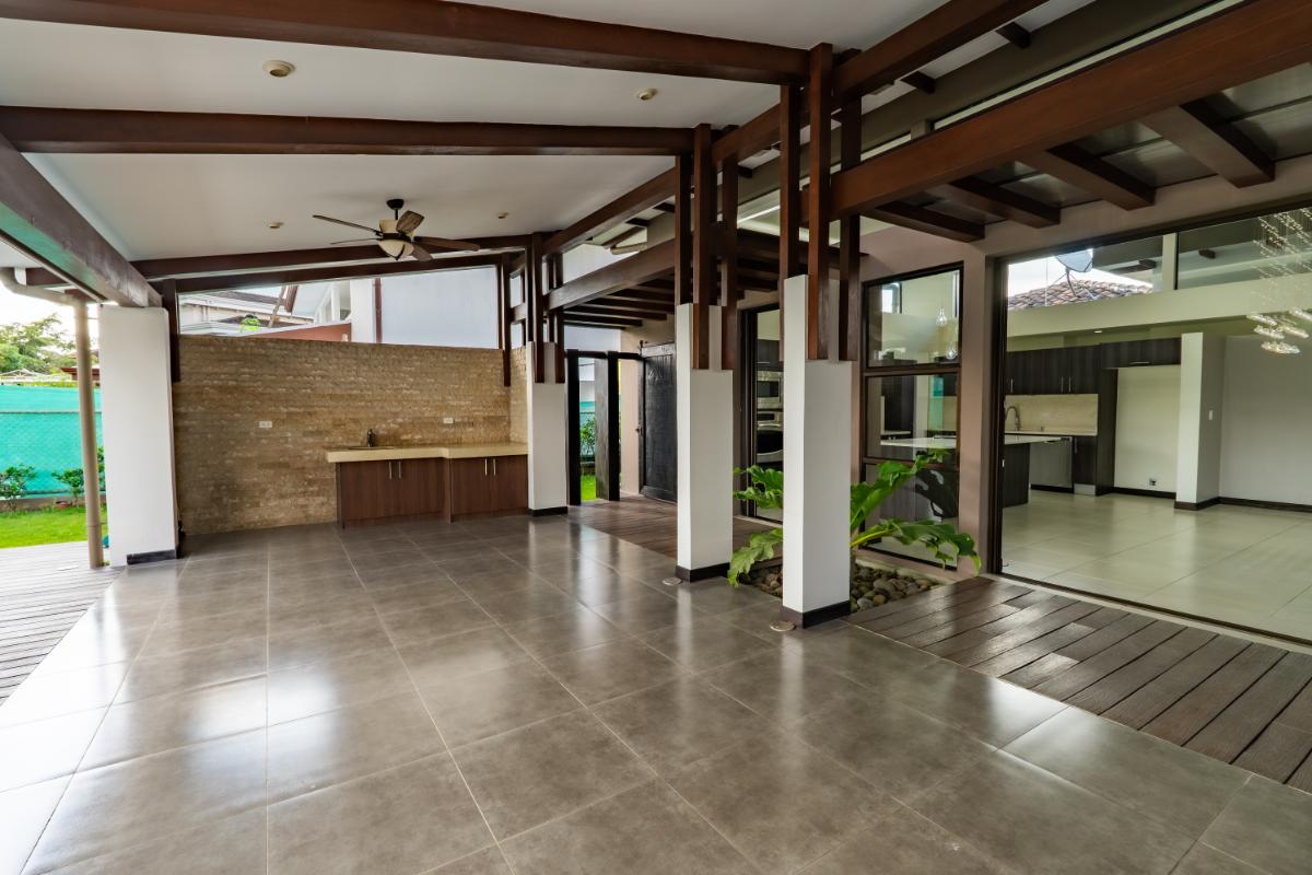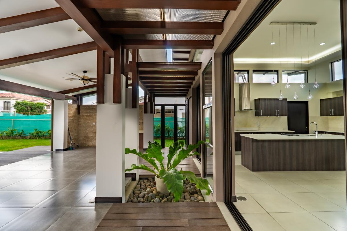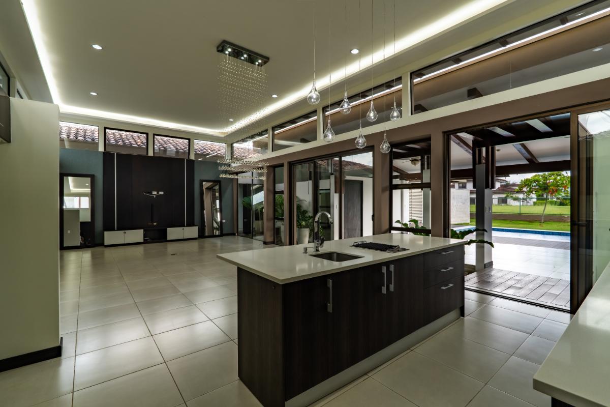 ID# 117457. Luxury home for sale in Hacienda Los Reyes, Condominio Las Vueltas – 4 bedrooms, 5 bathrooms, 470 m² of construction, 1,100 m² of land, US $730.000. Located within the prestigious Las Vueltas gated community inside Hacienda Los Reyes, this 470 m² luxury residence on a 1,100 m² lot offers a superior living experience in one of the most exclusive and consolidated areas of La Guácima, Alajuela. Built in 2018 under the accessibility standards of Law 7600, the home combines generous spaces, premium finishes and a functional design that maximizes natural light, comfort and privacy. Its architecture is ideal for families seeking a secure, modern lifestyle surrounded by nature in a residential environment known for beauty, tranquility and long-term value. The open-concept interior integrates the living room, dining room and kitchen under high ceilings with excellent cross ventilation. The home features 4 spacious bedrooms, each with a full bathroom, air conditioning and high-quality finishes. The primary suite includes a jacuzzi, walk-in closet and an integrated private office, creating an ideal space for rest and productivity. Additional spaces include a TV room or office with direct access to a private terrace, a kitchen with pantry, full service bedroom, laundry room and drying area. Designed for outdoor living, the social area offers a large terrace with an underground wine cellar, a heated saltwater pool, children’s playhouse, pet area, automatic perimeter irrigation and lighting, mezzanine storage, a garage for 2 vehicles with EV charging capability and exterior parking for 4 additional cars. A private underground water tank ensures continuous water supply. As part of Las Vueltas, residents enjoy underground utilities, cobblestone streets and 24/7 security, along with full access to the amenities of Hacienda Los Reyes: an expansive 9-hole golf course, tennis, basketball and soccer courts, recreational and semi-Olympic pools, gym, sauna, clubhouse, restaurant, playgrounds, walking trails and extensive green areas. Its strategic location provides immediate access to Route 27 and proximity to Plaza La Guácima, Auto Mercado, restaurants, cafés, banks and essential services. Nearby are top private schools such as GSD International School and Saint Paul, as well as medical centers including Hospital Metropolitano and the new CIMA Hospital under construction. Major free-trade zones—Coyol Free Zone, Green Valley and El Cafetal—are just minutes away, as is the Juan Santamaría International Airport. This property represents an exceptional opportunity for those seeking a luxury home in Hacienda Los Reyes, offering a perfect balance of design, functionality, spacious living, privacy, premium amenities and a privileged location.