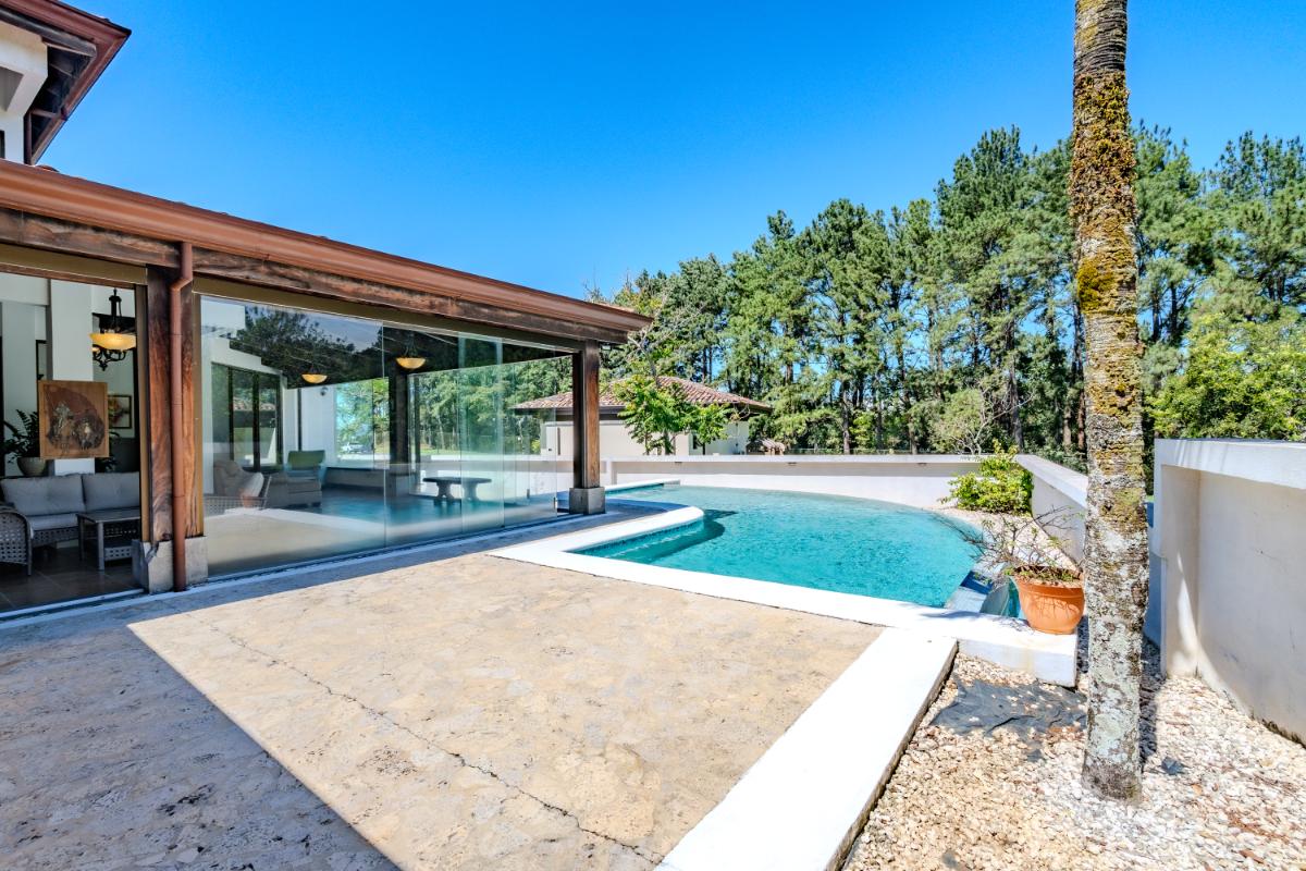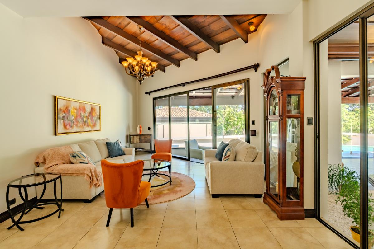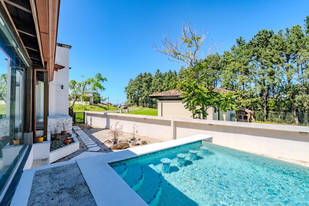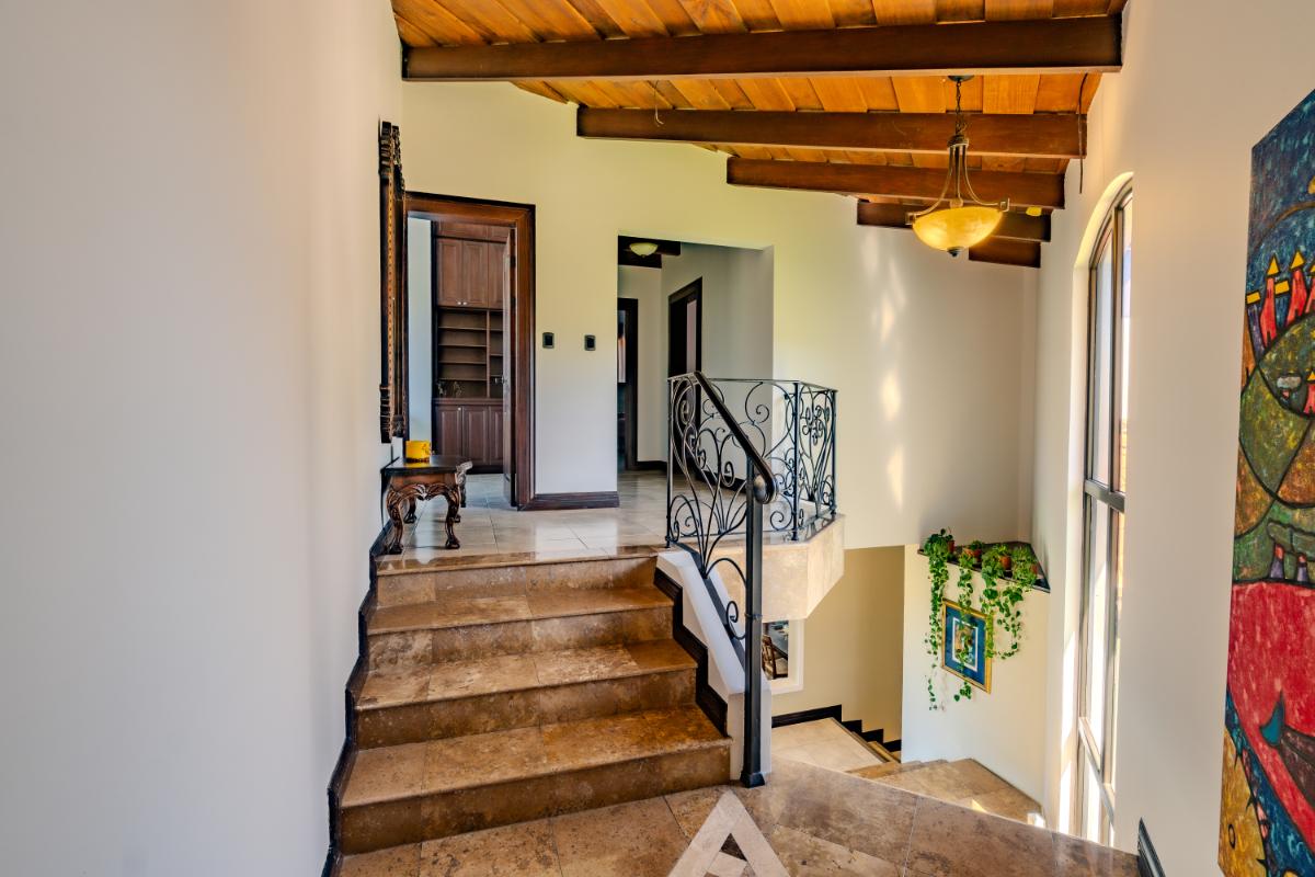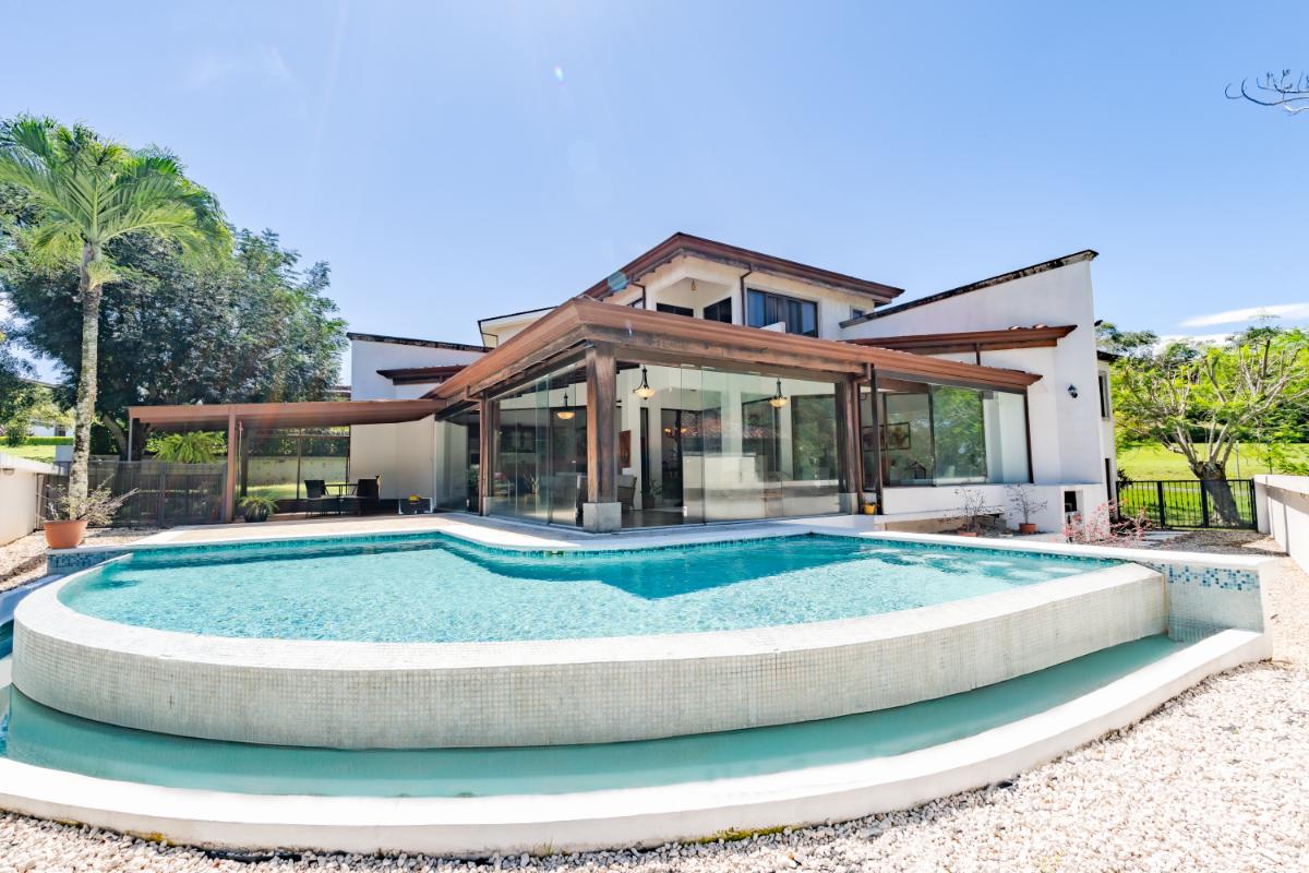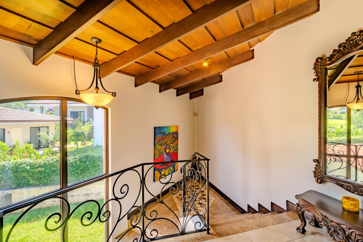 ID #117461. Luxury home for sale in Las Vueltas, Hacienda Los Reyes, La Guácima – 4 bedrooms, 6 bathrooms, 515 m² construction, 945 m² lot, US $750,000. This exclusive property is located inside the prestigious Las Vueltas condominium, one of the most desirable residential sectors within Hacienda Los Reyes, a top luxury real estate community on the west side of Costa Rica’s Greater Metropolitan Area. Its privileged location near Automercado, private clinics, GSD International School, Los Reyes Country Club, the golf course, extensive green areas, and only 20 minutes from Juan Santamaría International Airport (SJO) and 45 minutes from the Pacific Coast, makes this home an exceptional high-end real estate investment opportunity in Costa Rica. Designed for comfort, elegance, and privacy, the residence features a solid concrete structure and premium finishes such as porcelain tile, marble, travertine, and clay roof tile—an architectural palette that delivers timeless beauty, durability, and long-term value. The generous 945 m² lot provides ample green space, natural airflow, and the ideal setting for families seeking tranquility and security within a consolidated gated community. With 515 m² of construction, the home offers expansive, well-distributed interiors that integrate both formal and informal social areas, perfect for hosting guests, enjoying family gatherings, or embracing a refined everyday lifestyle. A standout feature of the property is the private swimming pool, designed to take full advantage of La Guácima’s warm climate and create a true resort-style living experience at home. The four bedrooms offer excellent distribution and comfort, while the six bathrooms provide outstanding functionality for large families, frequent visitors, or those needing additional space for a home office, TV room, or multipurpose areas. As part of Las Vueltas, residents enjoy security, privacy, lush surroundings, and the optional access to the renowned Los Reyes Country Club (separate membership), which offers an 18-hole golf course, swimming pools, sports courts, walking areas, and a restaurant—enhancing an upscale, peaceful, and nature-integrated lifestyle with strong and growing added value. Living in Hacienda Los Reyes means being part of a luxury gated community with excellent connectivity to Santa Ana, Escazú, Coyol’s corporate parks, and the main commercial hubs of the Central Valley. Proximity to essential services such as Automercado, restaurants, private schools, clinics, and the main routes to the Pacific Coast makes this home ideal for families looking for a spacious, solidly built, and well-located residence in an exclusive and secure natural environment.