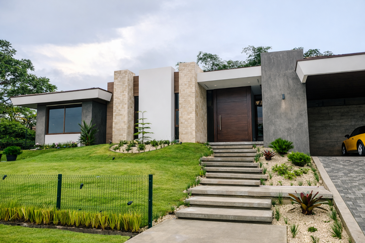 ID#117467 | Single-Story Luxury Home for Sale in Hacienda Los Reyes, La Guácima | 6,5 bedrooms | 6 bathrooms | 500 m² construction | 1,360 m² lot | US$1,150,000 Casa Solara is a brand-new single-story smart luxury home for sale in Hacienda Los Reyes, La Guácima — one of the most prestigious gated golf communities in Costa Rica and one of the fastest-growing luxury residential zones near San José. This contemporary residence offers 500 m² of construction on a 1,360 m² lot, combining modern architecture, privacy, expansive outdoor areas, and strong long-term investment potential inside a high-demand country club environment. Designed for seamless indoor-outdoor living, the home features five spacious bedrooms and six bathrooms, high ceilings, expansive glass walls, premium imported finishes, and a private family wing for added privacy. At the center of the property, a private swimming pool and professionally landscaped gardens create a resort-style setting ideal for entertaining, relaxation, and everyday living. Located inside Hacienda Los Reyes, the property is surrounded by the Los Reyes Country Club and golf course, offering access to green areas, walking trails, and sports facilities. Its strategic location places it approximately 20 minutes from Juan Santamaría International Airport (SJO) and about 45 minutes from the Pacific Coast, with easy access to Jacó, Herradura, and Playa Hermosa. The home is also close to Automercado, top private clinics and hospitals, GSD International School, and the corporate and lifestyle centers of Santa Ana and Escazú. With strong demand from executives and expatriates working in El Coyol Free Trade Zone and nearby business parks, Hacienda Los Reyes supports a solid luxury rental market. The single-level design, large lot, modern architecture, country club lifestyle, and proximity to SJO make Casa Solara an excellent option as a primary residence, second home, or high-yield luxury investment in Costa Rica.