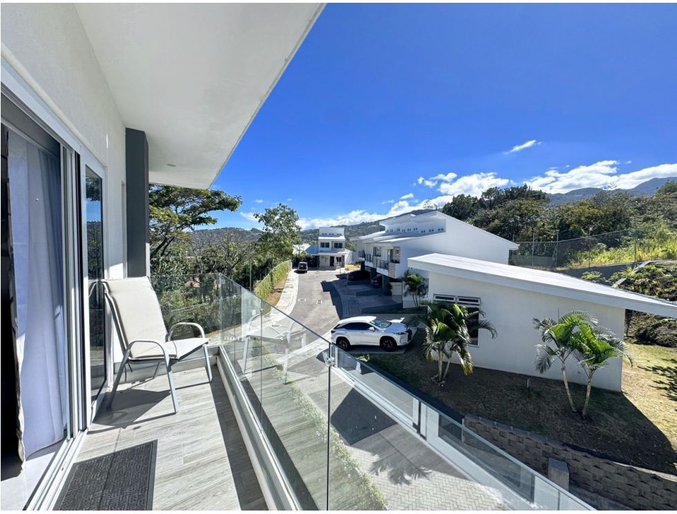ID# 117470. Contemporary Penthouse for Sale in Santa Ana, Costa Rica. 3 bedrooms, 2,5 bathrooms. West Heights is a contemporary penthouse for sale in Santa Ana, Costa Rica, located in one of the most strategic and high-value residential areas of the Central Valley, just minutes from Valle del Sol, direct access to Route 27, the corporate centers Forum I and Forum II, and lifestyle hubs such as City Place and Momentum Plaza. Positioned on the third level of a boutique three-story gated community with only six residences, this corner unit offers privacy, security, elevator access, visitor parking, social areas, green spaces, and sweeping panoramic views of the Central Valley and surrounding mountains from sunrise to sunset. With 152 m² of interior living space, the penthouse offers three bedrooms, two full bathrooms, air conditioning throughout, a dedicated laundry area, and two garage parking spots. The open-concept kitchen, living, and dining areas are enhanced by quartz countertops, porcelain floors, high ceilings with cove lighting, and floor-to-ceiling tempered glass sliding doors that open to a spacious balcony with glass railings overlooking the valley. The primary suite functions as a private retreat with a walk-in closet, en-suite bathroom, air conditioning, and its own balcony facing the eastern mountains, ideal for peaceful mornings. Two additional bedrooms share a full bathroom, providing flexibility for guests, a home office, or family living while maintaining comfort and privacy throughout the residence. This condominium offers excellent amenities including a condo pool, BBQ area, landscaped green areas, social spaces, 24/7 security, and controlled access, making it ideal for executives working in Santa Ana and Lindora, couples, or small families seeking a luxury condo near San José, only 30 minutes from Juan Santamaría International Airport and approximately 80 minutes from the Pacific Coast—combining views, design, location, and investment value into one exceptional real estate opportunity in Costa Rica.