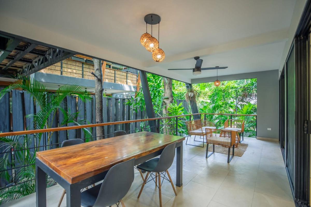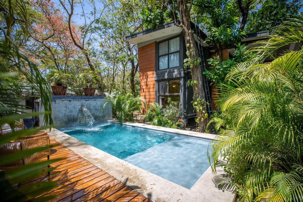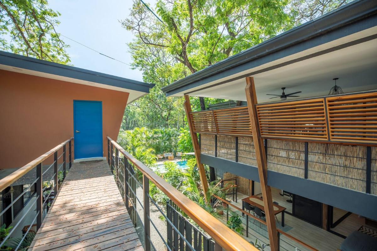 ID# 117475. Flora Apartments for Sale | 8 Rental Units in Nosara. $1,800,000. Construction 800m2 | 16 bedrooms | 12 bathrooms Located in the heart of Playa Pelada, Nosara, one of the most desirable coastal destinations in Costa Rica’s North Pacific, this unique 8-unit container apartment complex for sale in Nosara represents a rare turnkey investment opportunity combining immediate cash flow, strong short-term rental demand, and long-term appreciation potential. Situated just a 15-minute walk from Playa Pelada beach, the Nosara River, and minutes from Playa Guiones, this income-producing property is immersed in lush tropical jungle surroundings, where daily life is framed by native wildlife, canopy trees, and the tranquil atmosphere that defines Nosara real estate. The project, known as Flora Apartments, consists of eight fully furnished and fully rented apartments, strategically designed to serve both long-term tenants and high-performing Airbnb vacation rentals, with documented rental history and financials available for qualified buyers. The complex is distributed over two levels and includes four Type A apartments (65 m²) featuring one bedroom, one bathroom, integrated kitchen and laundry tower, multipurpose living space, and a covered outdoor terrace ideal for indoor-outdoor living, as well as four Type B apartments (75 m²) offering two bedrooms, two bathrooms, a formal laundry area, open kitchen, and expansive covered terraces that function as outdoor living and dining areas, all shaded by mature trees that naturally regulate temperature and enhance privacy. Residents and guests enjoy a beautifully landscaped shared garden pool, secure on-site parking for one vehicle per unit, and additional street parking, ensuring convenience without compromising the low-density, eco-conscious character of the area. This Nosara investment property for sale benefits from its proximity to world-class surf beaches such as Playa Guiones and Playa Marbella, the Ostional Wildlife Refuge—internationally recognized for its sea turtle arribadas—along with Playa Garza and San Juanillo, known for fishing, snorkeling, and diving, making it highly attractive to international travelers, digital nomads, and lifestyle renters. The property is also close to Guiones Norte restaurants, boutique shops, yoga studios, and wellness centers, as well as the Nosara Civic Association hiking trails, river paths, horseback riding routes, and mountain trails, reinforcing its appeal for both short- and long-term occupancy. With low operating costs, consistent monthly income, and a prime location in one of Costa Rica’s most stable and high-demand rental markets, this container apartment complex in Nosara offers a compelling opportunity for investors seeking a scalable, lifestyle-driven asset or a private retreat with built-in income in the Guanacaste luxury real estate market.